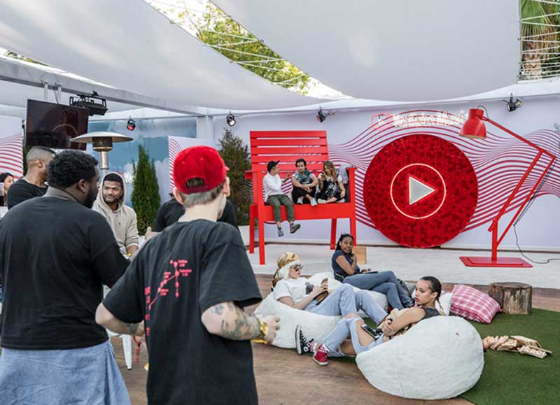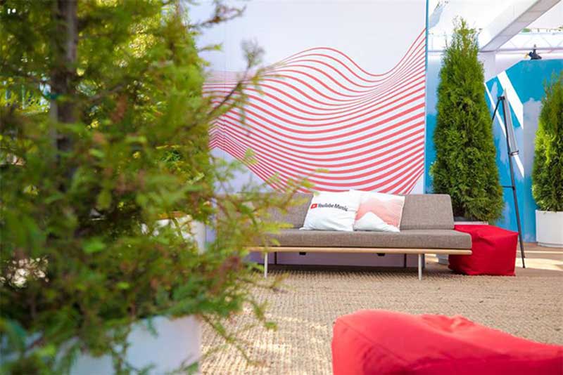 YouTube音乐在Flog Gnaw营地音乐狂欢节上设计搭建了一个艺术家休息区,该项目创造了一个空间来吸引客人进入,通过具有传奇色彩的设计元素吸引客人制作社交媒体的内容,当客人们在休闲和玩耍的时刻,在具有YouTube音乐属性的空间里展示YouTube对音乐的投入,成为了YouTube音乐在音乐节上受众的品牌接触点。