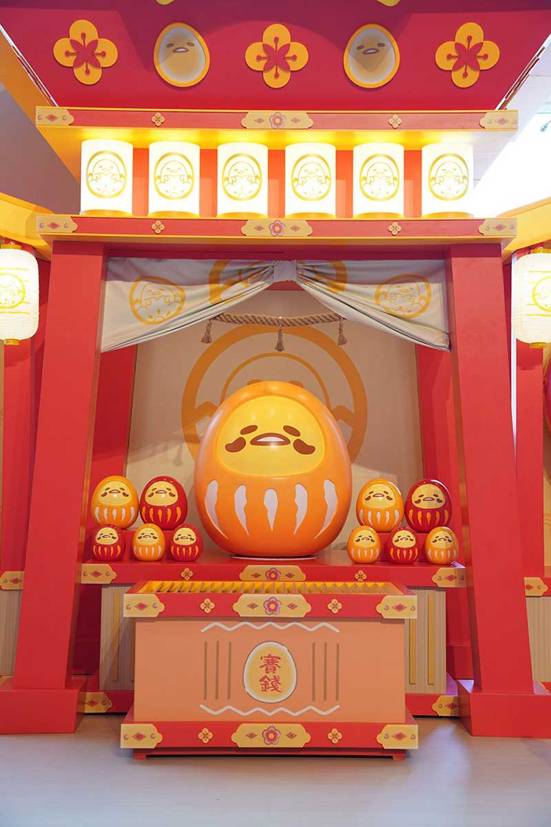 贺年装置中央亦布满不同大小的趣致达摩造型的蛋黄君,粉丝们可以齐齐许愿,开运迎丰年!百变蛋黄君更以聚宝金蛋造型于一旁的8呎高手摇抽奖机向大家招手,透过抽奖机转出「梳乎金蛋」及幸运金币,寓意新年风生水起,财运滚滚来。