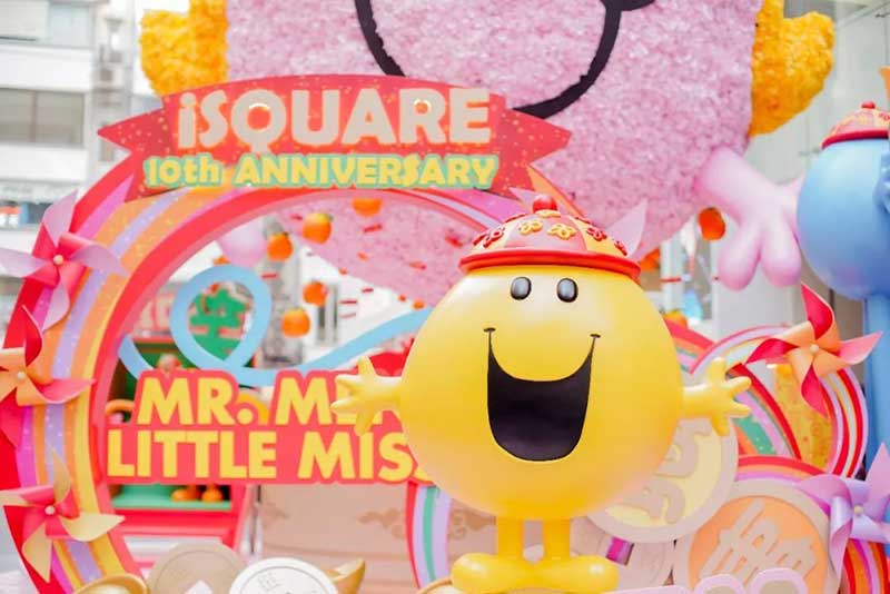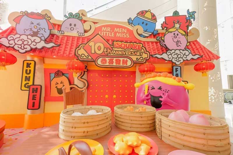 2020年农历新年,适逢iSQUARE国际广场十周年,一众陪着不少人成长的英国经典卡通人物Mr. Men & Little Miss及家族成员远道而来,以红当当的布置,迎接喜庆新春。