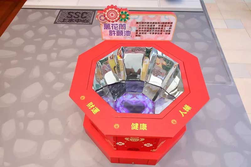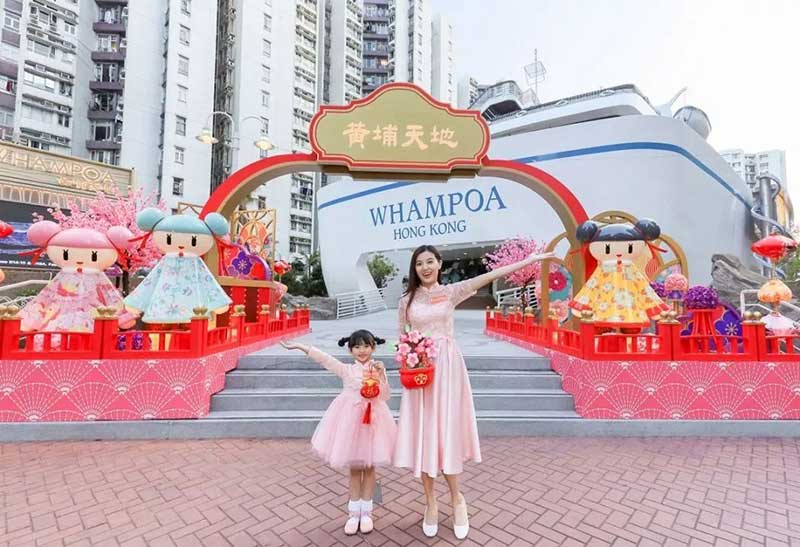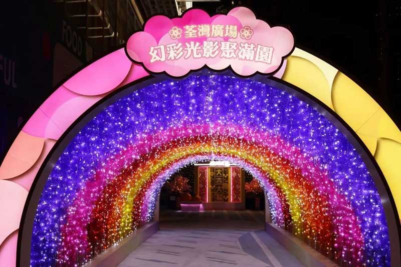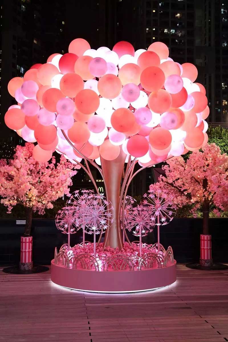 11 荃湾广场【美陈主题:福气满满樱花园】有别于传统新春大红色,荃湾广场以一众少女最爱的粉色及色彩系列为基调,为5楼平台花园【福气满满福满园】打造成一个汇聚「祝福」、「希望」及「幸福」的新年梦幻打卡圣地。【福气满满福满园】呈献3大贺年打卡位,先以逾13米长、20,000个「福」字组成、由8款颜色打造的「幻彩福字步道」掀起序幕,漫天七彩「福」字形成一道七色彩虹;再以玩味感十足的「大吉大利全盒」为你送上甜甜蜜蜜的祝福;最后,走到「福气满满樱花园」内,在人气爆灯、由 188个圆球砌成的粉红樱花许愿树下许下你2020年的愿望。
