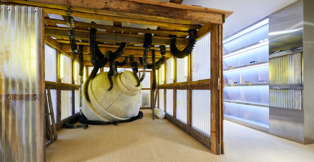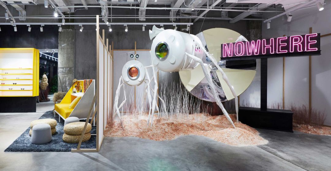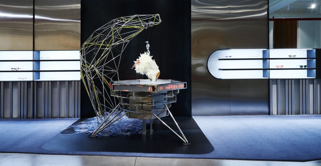 这已经是这家旗舰店开业以来,第三次重装更新了。这次它以「THE NAVIGATOR」为主题全新亮相,同时,该空间也是 GENTLE MONSTER 2019 年「13」特别项目中的一个。北京旗舰店的空间呈,现了地球与月球渐渐分离,引发的一系列环境变化的各种景象。
