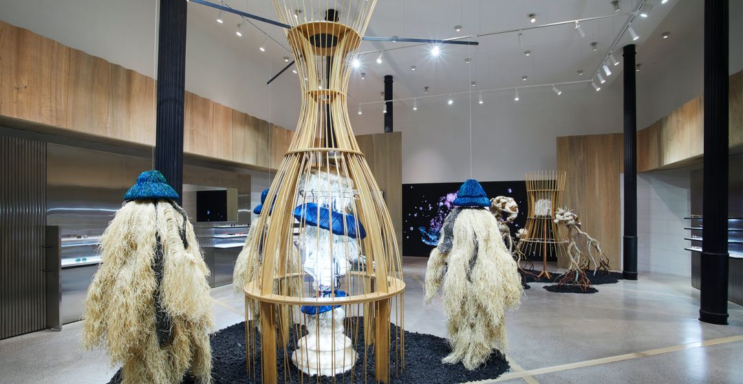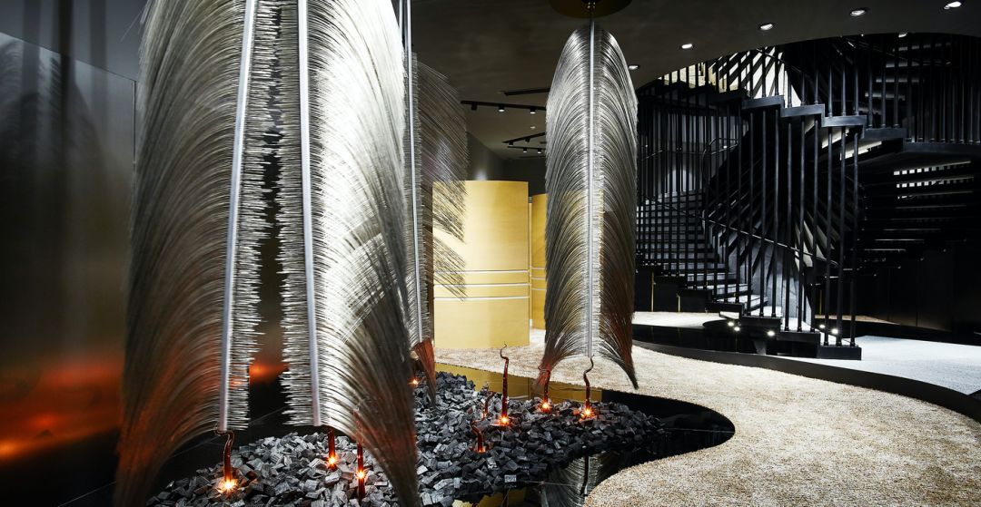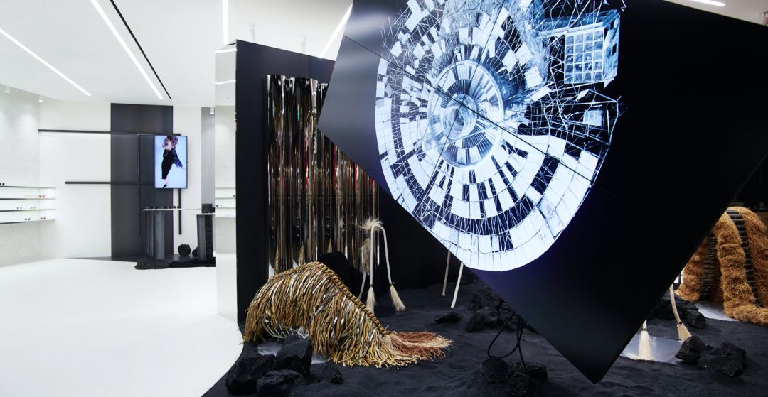 韩国釜山旗舰店以「THE WHITE CROW」为主题,讲述了面临怪兽入侵,想要保护蛋的乌鸦的故事。空间以巨大的动态装置开启故事的序幕,根据顾客游览动线,设计了一系列戏剧化的观赏体验,期望带给观众意想不到的惊喜与快乐。