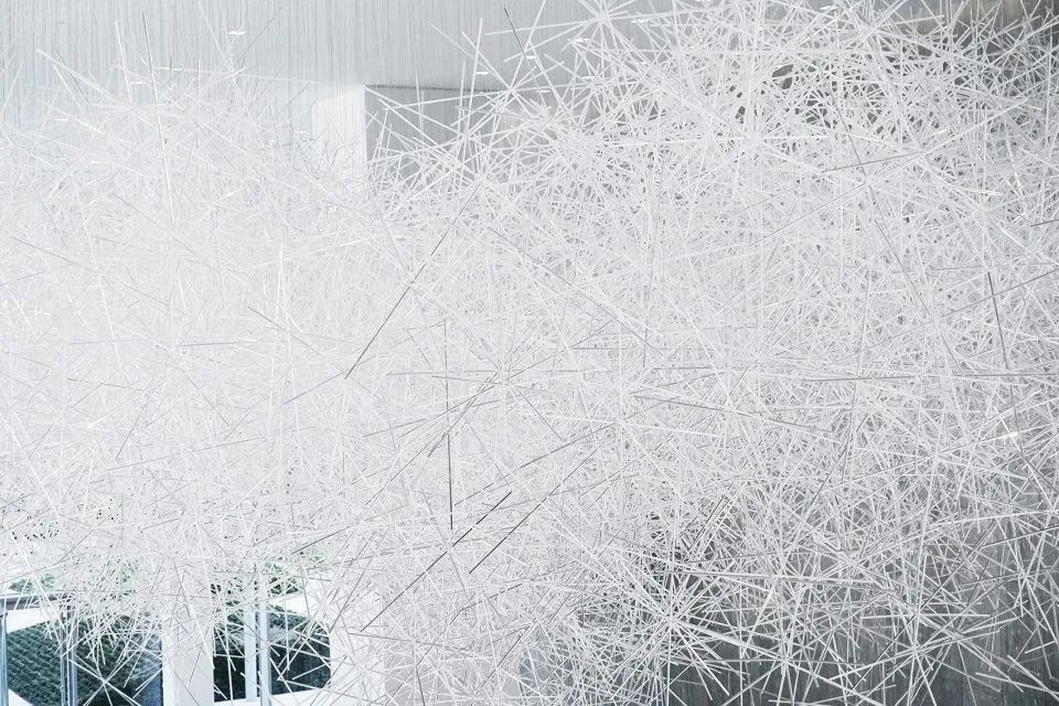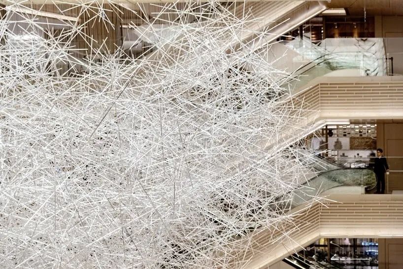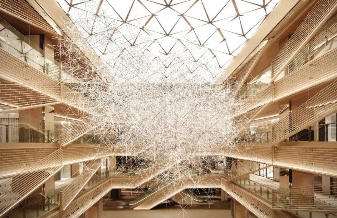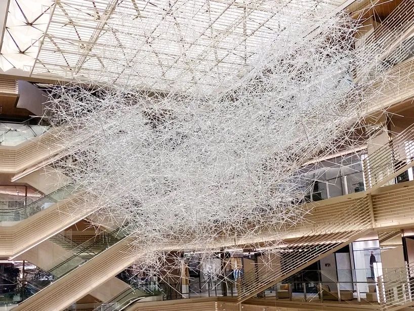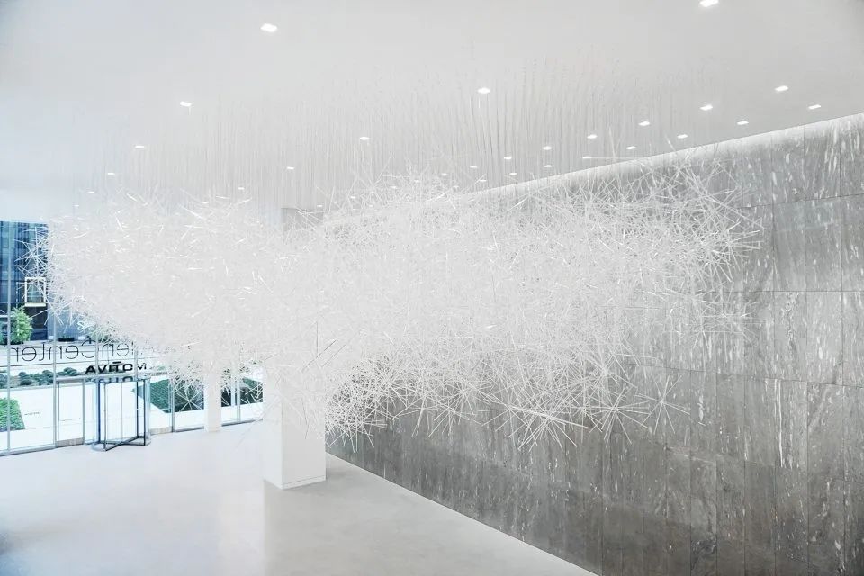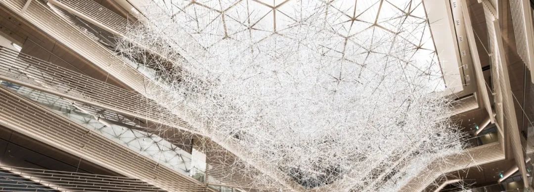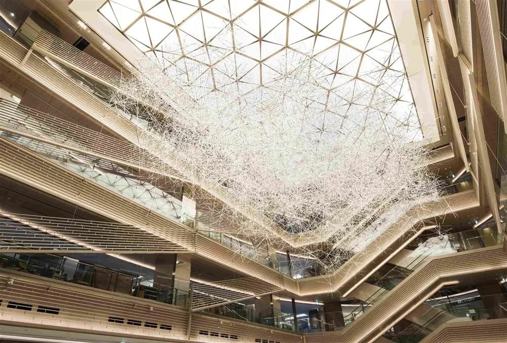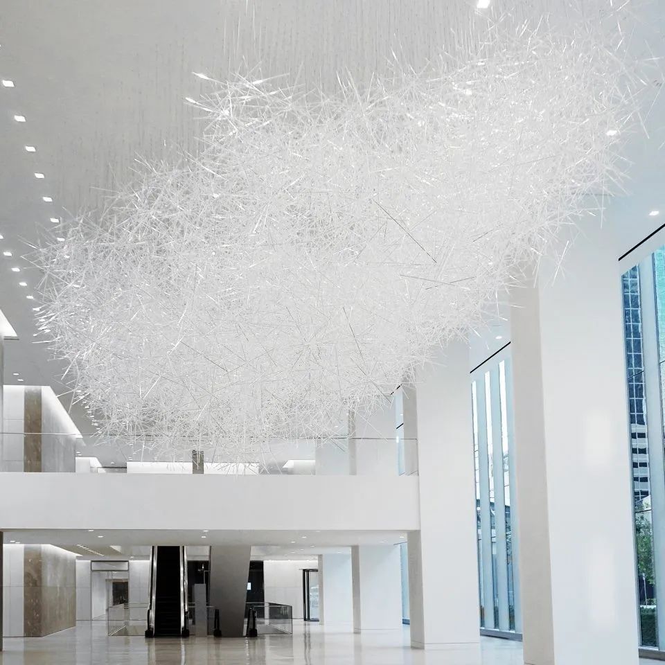 这不是大家第一次看到吉冈德仁的的《棱镜之云》,美国休斯顿的文化中心,吉冈德仁的艺术装置作品“棱镜之云”(Prismatic Cloud)也曾在艾伦中心展出过,当时漂浮在空中有2万根透明的棱柱相互堆叠其中,十分壮观。
