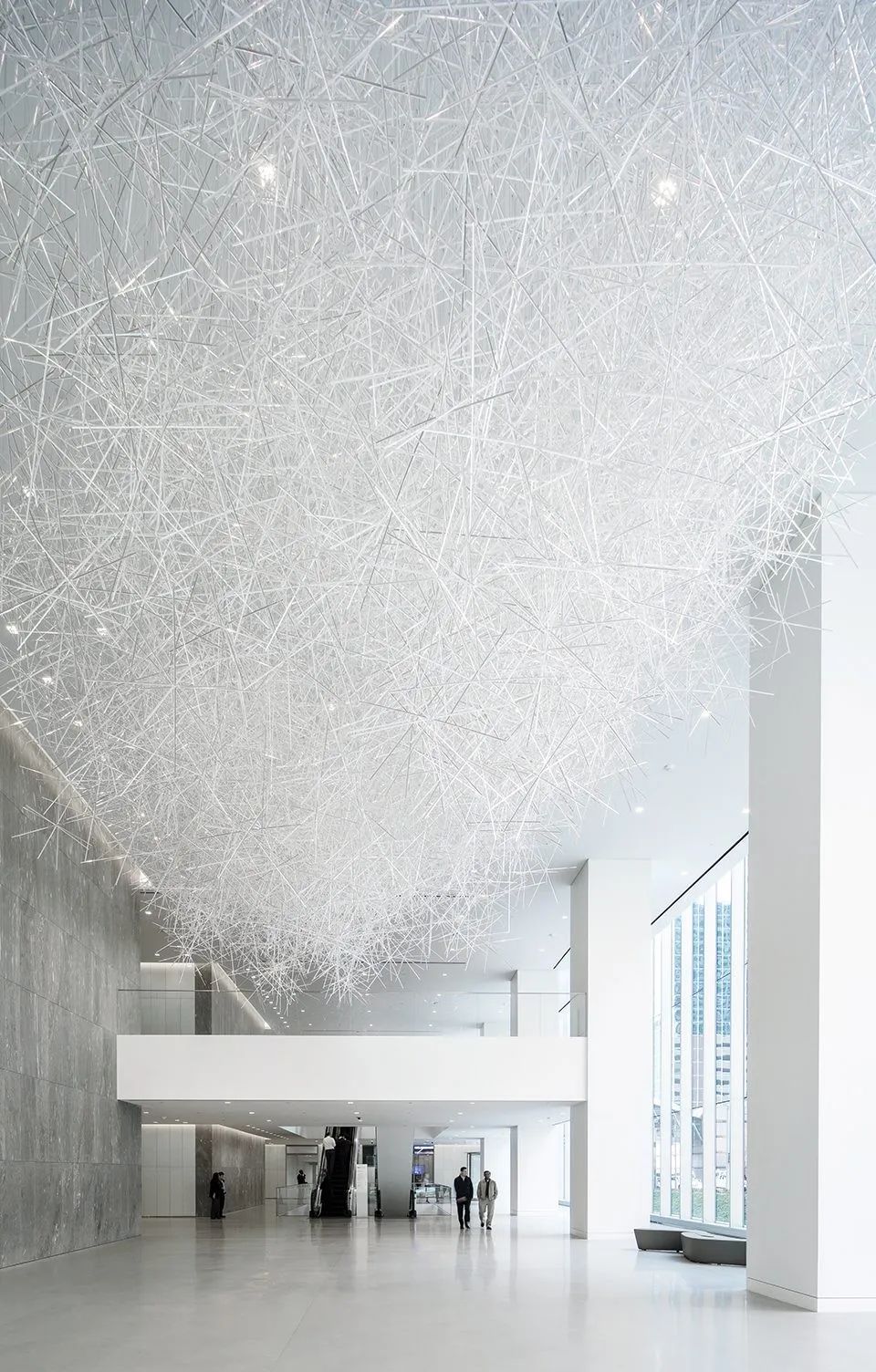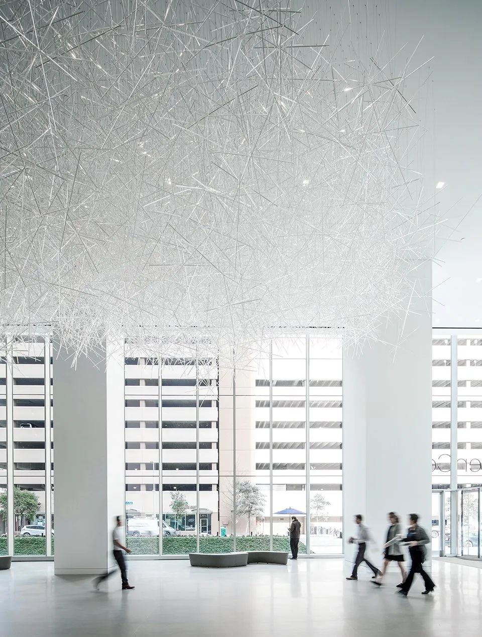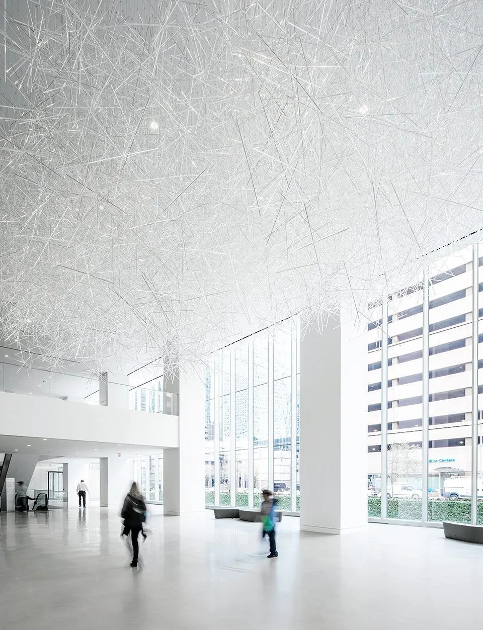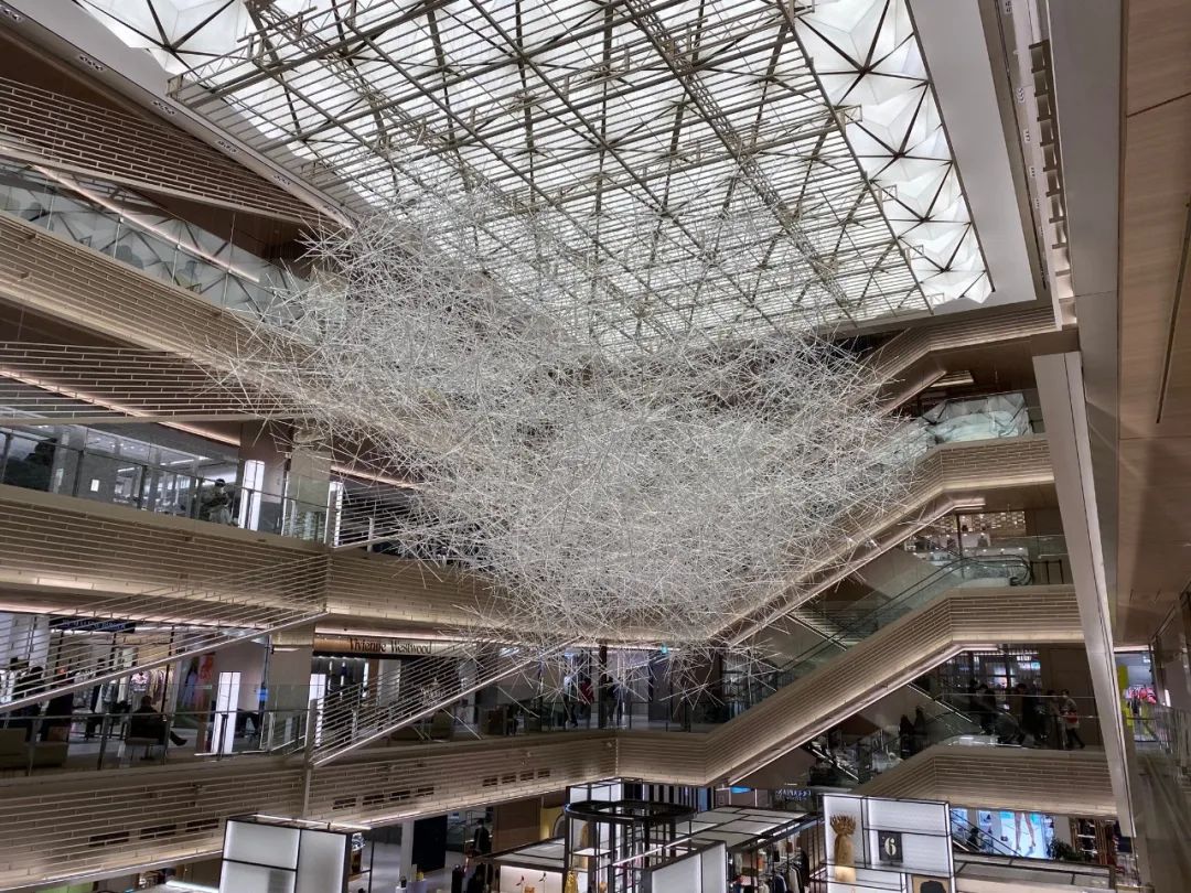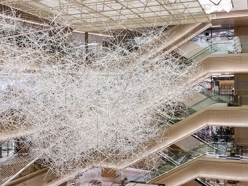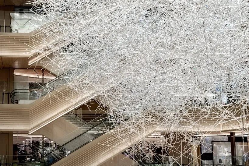 这不是大家第一次看到吉冈德仁的的《棱镜之云》,美国休斯顿的文化中心,吉冈德仁的艺术装置作品“棱镜之云”(Prismatic Cloud)也曾在艾伦中心展出过,当时漂浮在空中有2万根透明的棱柱相互堆叠其中,十分壮观。