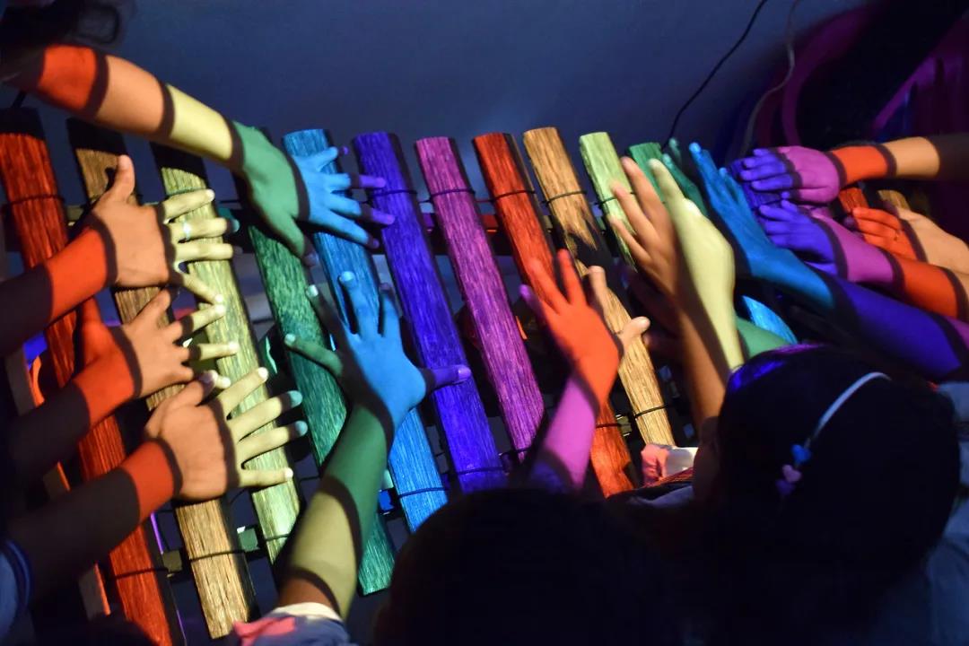 听不见的音乐是什么样子的?哥伦比亚互动艺术家Daniel Escobar Vasquez创作了一个名为Marimba Inclusiva的互动装置,帮助聋人感受音乐。在这种情况下,来自哥伦比亚太平洋海岸的传统乐器marimba de chonta充当了一个接口,让失聪的人通过振动体验声音。由于传感器和彩色的教育视频映射投影的组合,任何聋人都能感觉到节奏并学习演奏乐器。