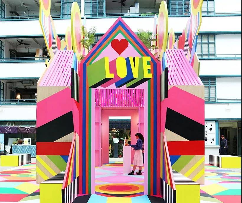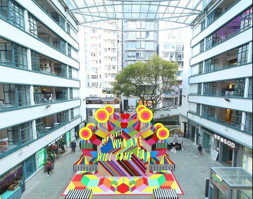 艺术家Morag myerscough为香港中环的一个社区庭院创作了一个大型装置“制作快乐”。这位伦敦艺术家以大胆和强烈的色彩运用来表现正能量,并鼓励每个人“互相倾听,一起努力找到前进的道路”。