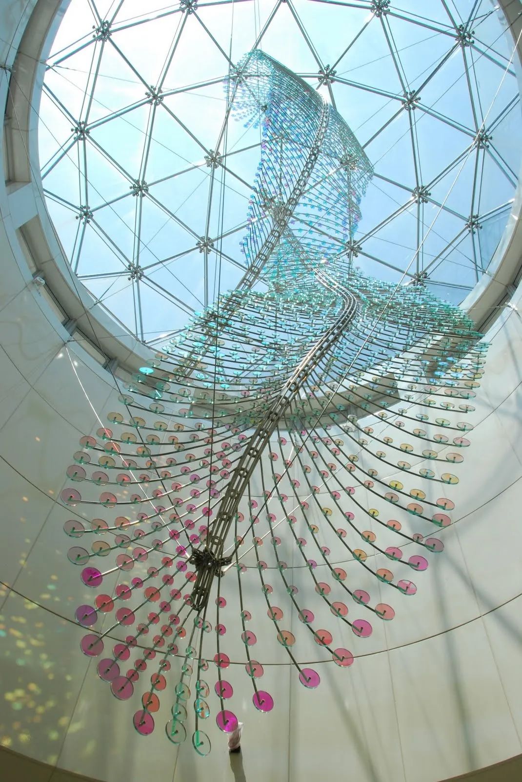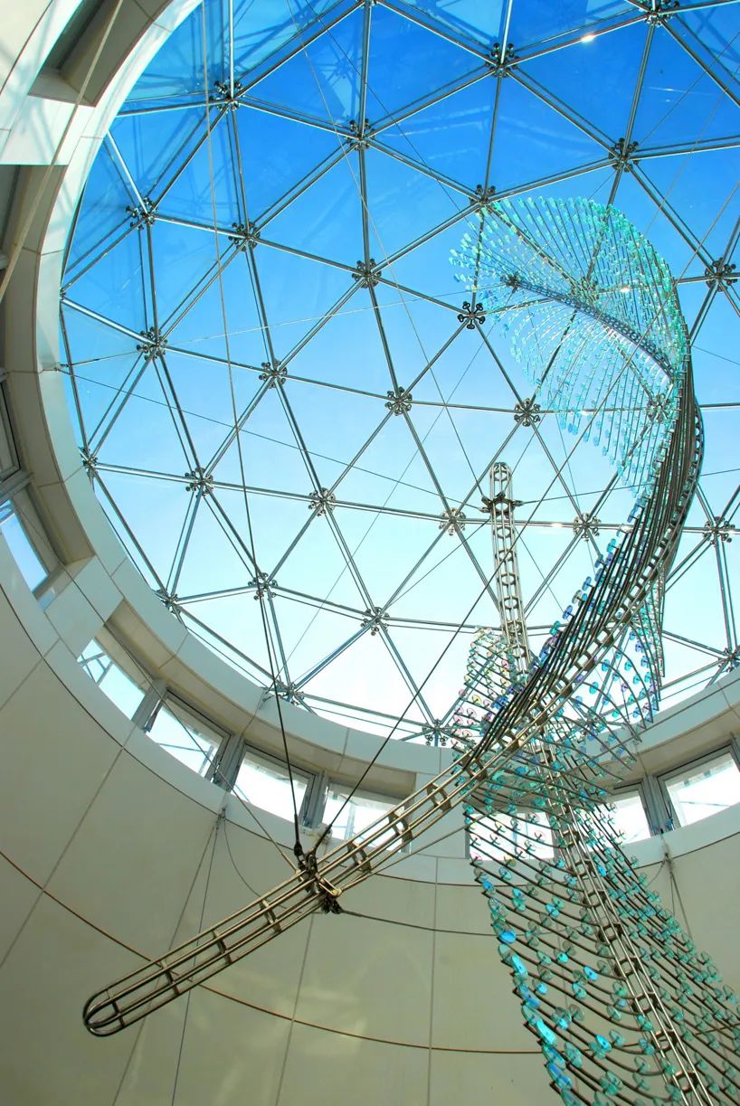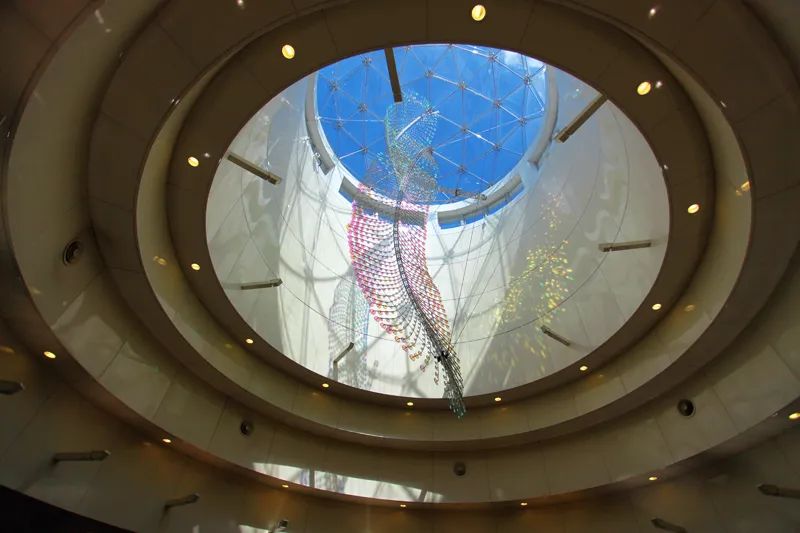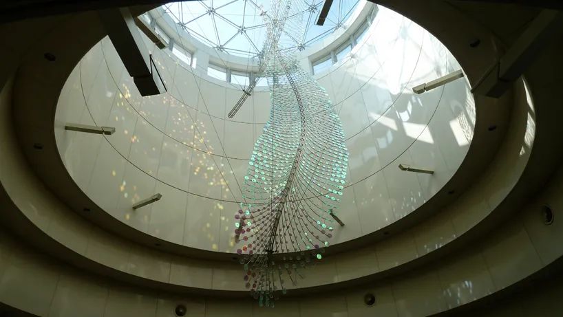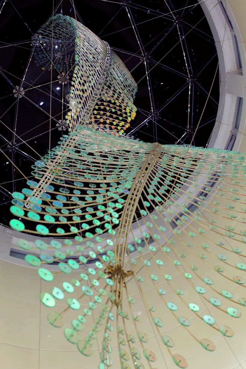 台北芦洲捷运站这个公共艺术作品由Ray King艺术家所创作,以「水起、云舞、鹭鸶飞」打造芦洲捷运站大厅上方的公共艺术「舞之羽」。