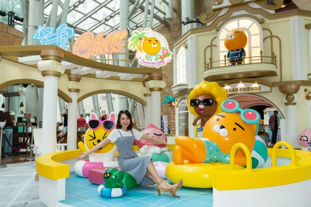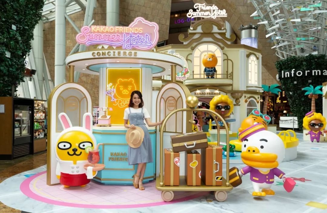 这家「FRIENDS SUMMER HOTEL」由KAKAO FRIENDS亲自「营运」,8大KAKAO FRIENDS人物Ryan、Apeach、Muzi、Con、Neo、Frodo、Tube及Jay-G,时而化身星级酒店职员为你效劳,时而按捺不住盛夏渡假心情,换上泳衣沙滩装,自己跑去当住客,与众同乐。