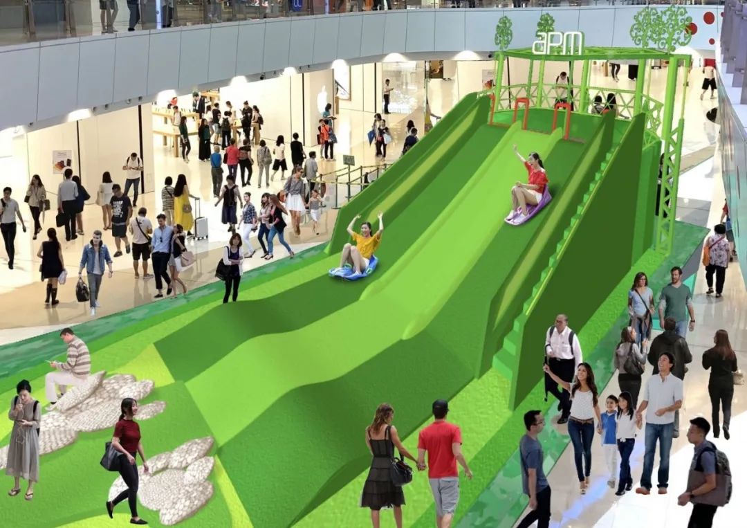 踏入炎炎夏日的暑期,新鸿基地产(简称新地)旗舰商场apm将室外玩乐及大自然元素带入室内,打造面积达3000平方呎一站式室内大自然游乐场,特设3大玩乐热点,包括apm首个室内5米高滑草场、360度梦幻花海打卡热点及VR虚拟实境运动体验。让大家无惧风雨,在室内都可以在绿油油的草地上做运动玩游戏,爆发一股势不可挡的动能量。