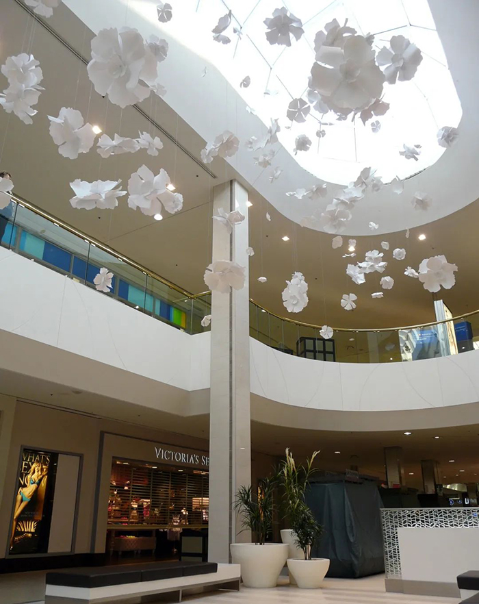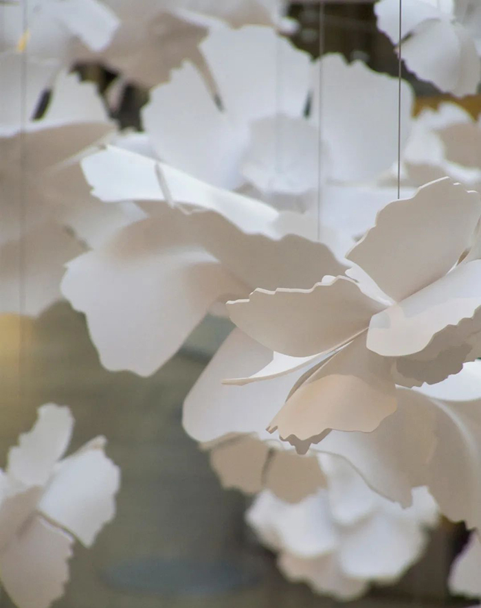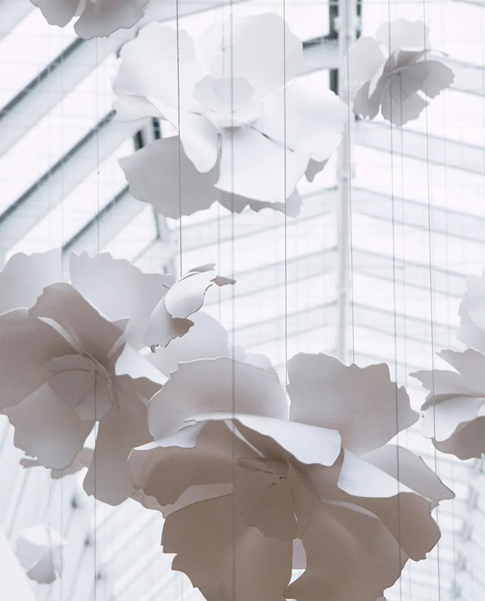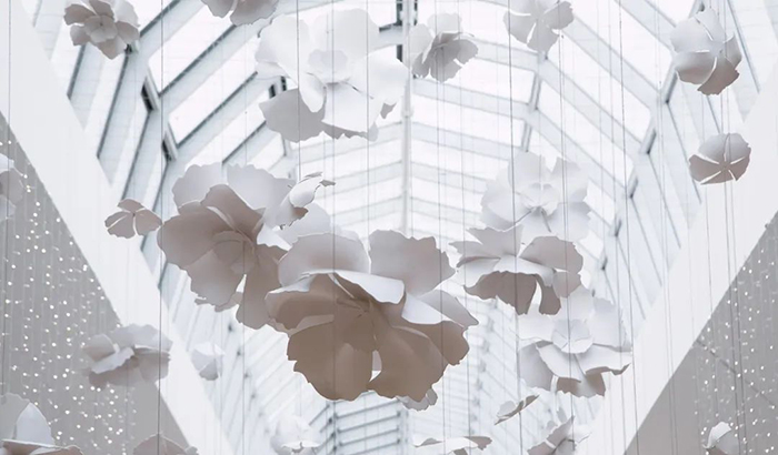 “EDMONTON”是由UV喷涂聚碳酸酯制成,长6.5米,宽3.6米,高3米。沉浸其中仿佛置身于花海之中,白色的花朵纷纷落下如梦似幻。