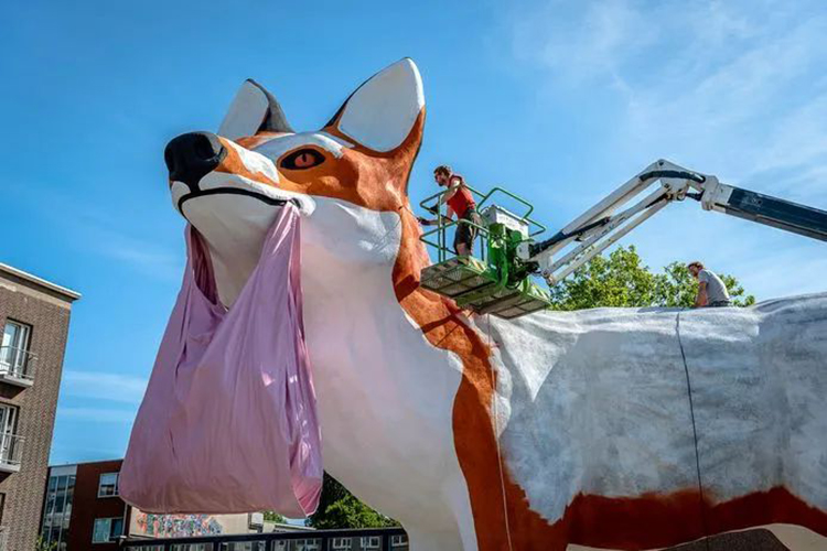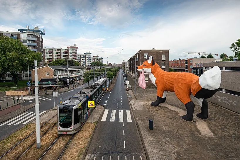 荷兰艺术家Florentijn Hofman在鹿特丹的城市结构中引入了一只不朽的 “bospolder fox”。