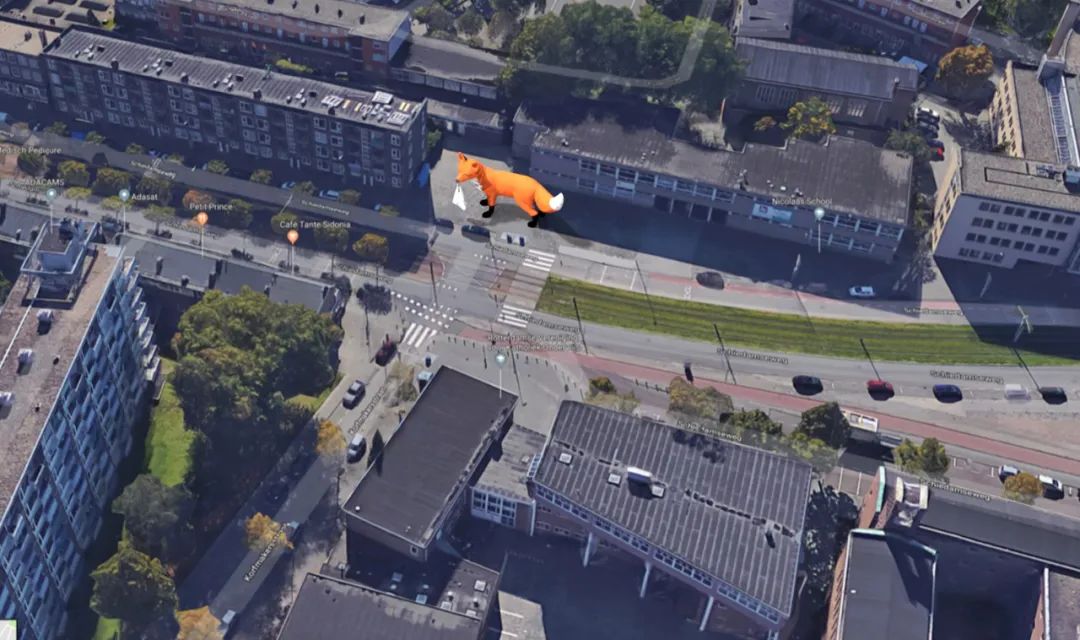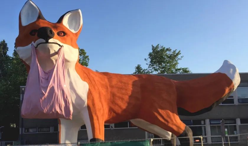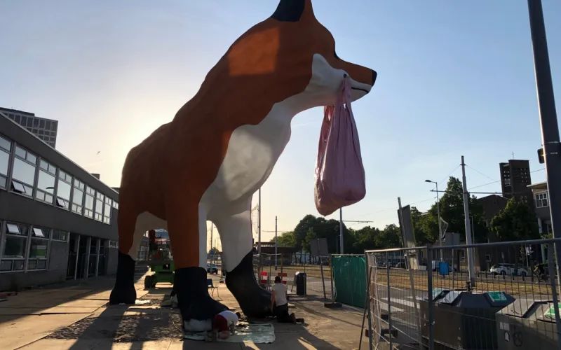 这只16米长的动物,嘴中叼着一个塑料袋,高高耸立在一个拥挤的十字路口上空。这个十字路口将Bospolder和Tussendijken——这个城市的两个区域分隔开来在那里,晚上经常可以看到狐狸。