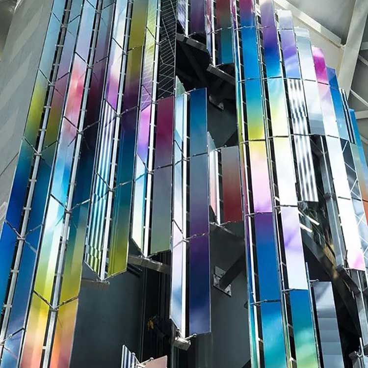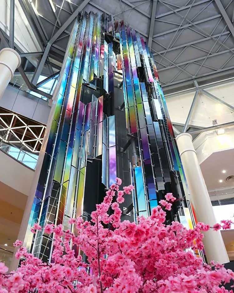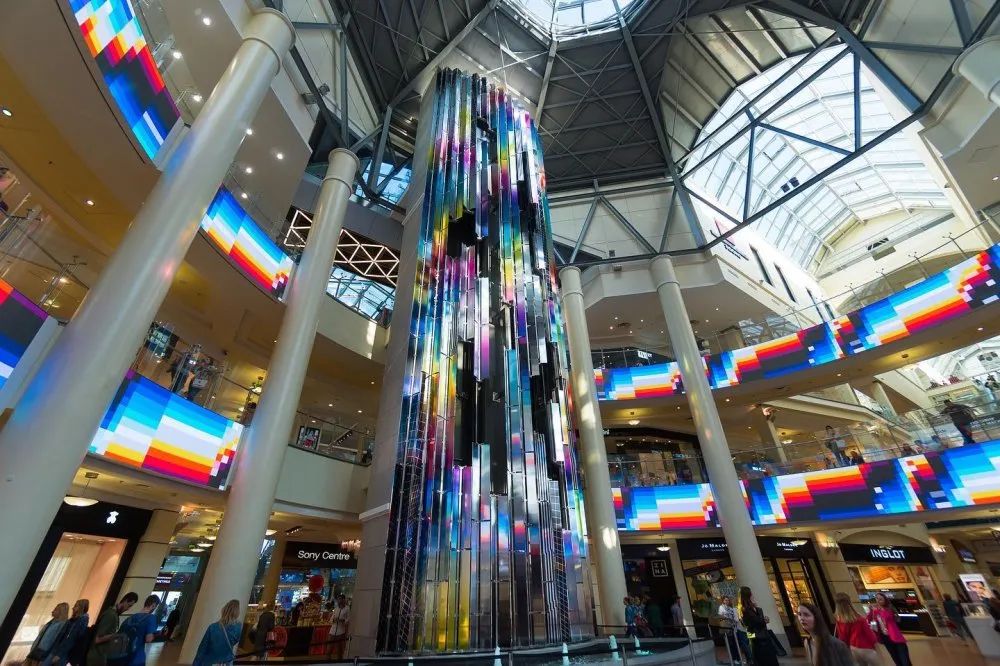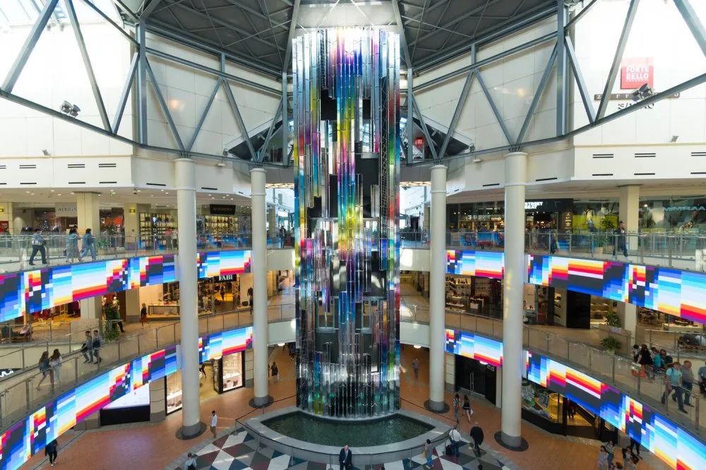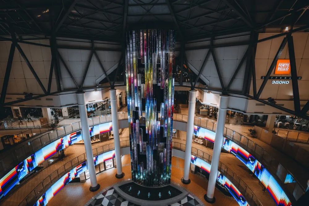在莫斯科的Atrium购物中心内安装了巨大的瀑布式庞大的计算机数字屏,这个纪念性的装置是著名的西班牙艺术家Felipe Pantone的「DATAFALL」作品,这个宏伟装置雕塑,大约82英尺高,它由数字印刷,并且由不锈钢制成。