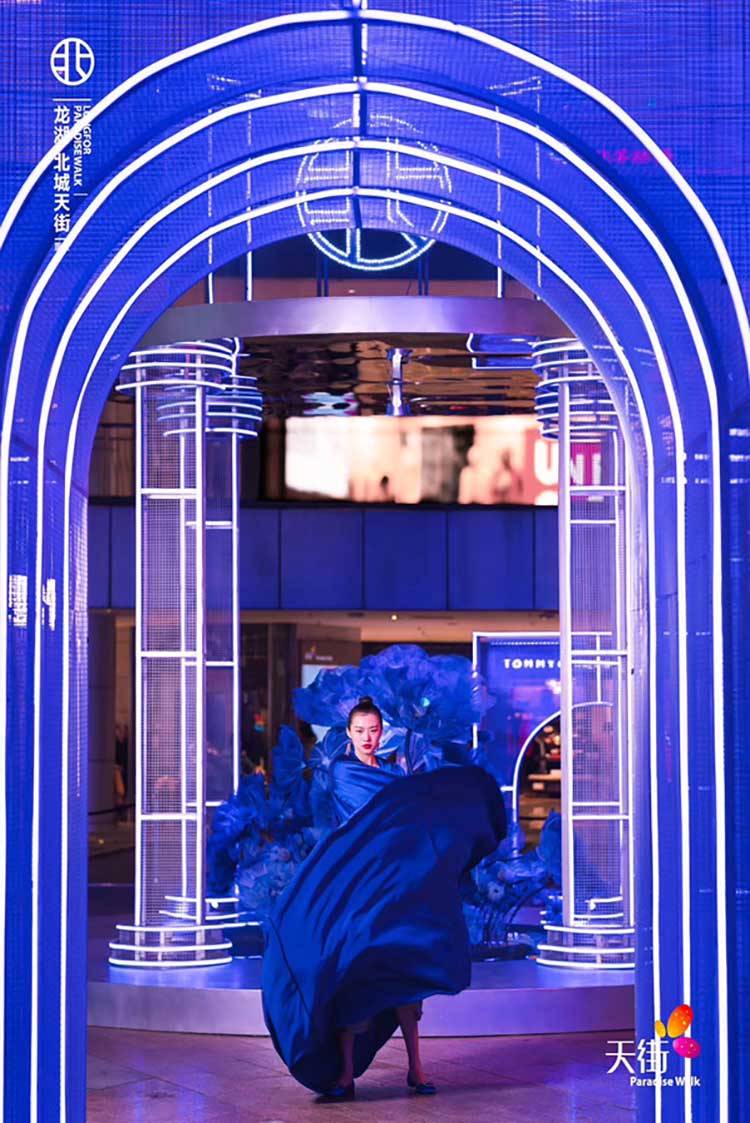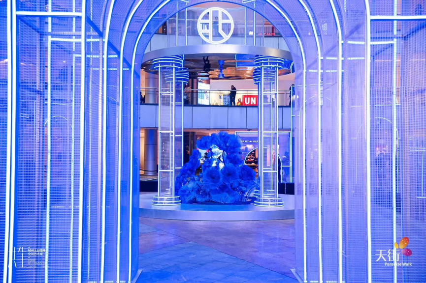 龙湖北城天街MALL上花开 空间艺术装置摄取古罗马建筑特色,在线条与框架之间进行解构重塑,通过艺术化形式的展现,重现建筑体本身的结构特点,同时整体规划打破常规,区别于整体对称的规划方式,将不同点位功能化,赋予不一样的建筑形态,体现整体装置的独立氛围,通过灯光效果营造将装置与灯光氛围结合,打造沉浸式的空间艺术感观。