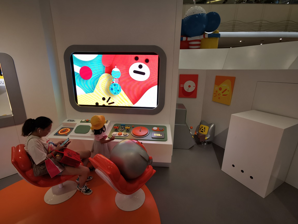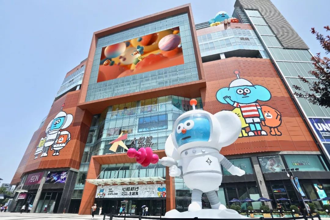 「心际航行——MOMO PLANET主题展」以“太空飞船”为设计灵感,中庭大型悬挂装置营造出星球悬浮的梦幻场景;广场的巨型雕塑和“抢占”了屋顶的三小只,可爱值爆表;还有由著名日本设计团体TASKO、国际知名特效团队PIXOMONDO 联手打造沉浸式空间装置,为你带来极致的交互体验,均是此次主题展的匠心之作。