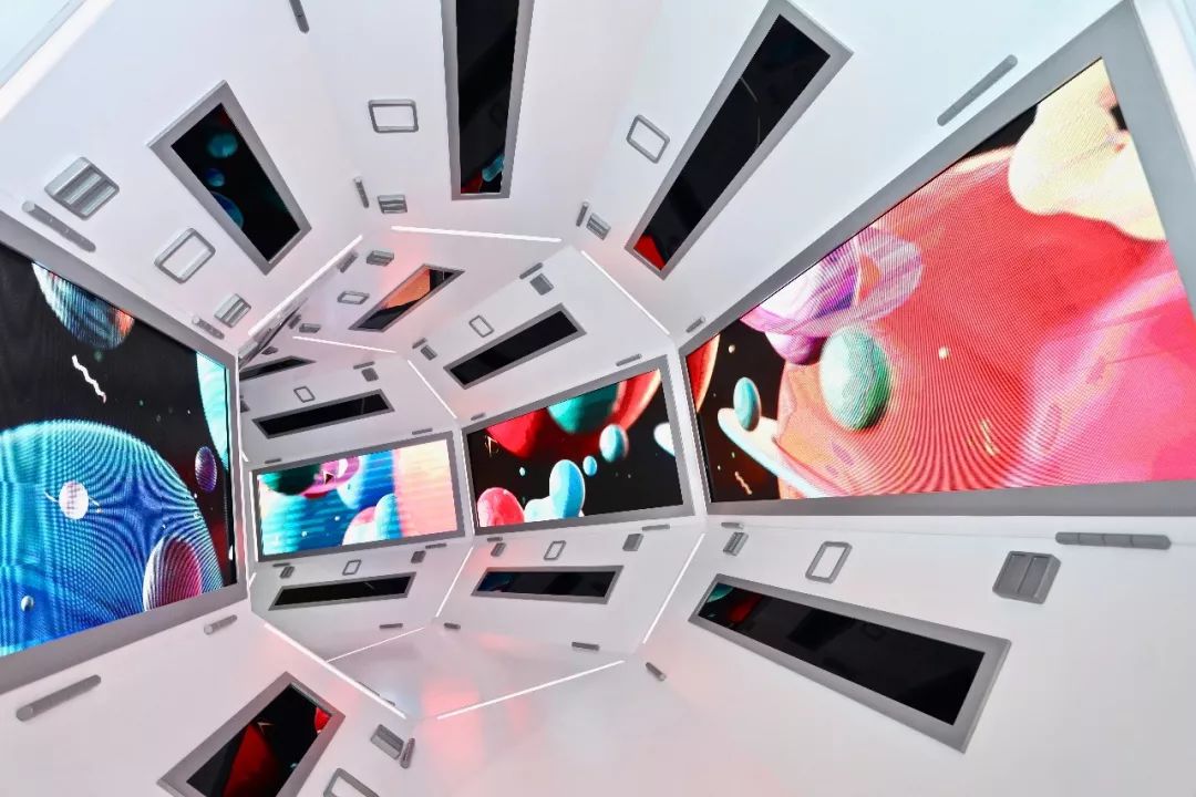 在认真阅读主展区入口LED播放的登舱须知后,你将踏进「消磁走廊」。透过舷窗,纷繁的宇宙在眼前展开,仿佛置身电影中的太空舱。超逼真的模拟宇宙视觉动画,让你忍不住想伸出手触碰周围漂浮的星球。从古老的幻想出发,去向未知的未来,此刻,我们身处哪一个次元?
