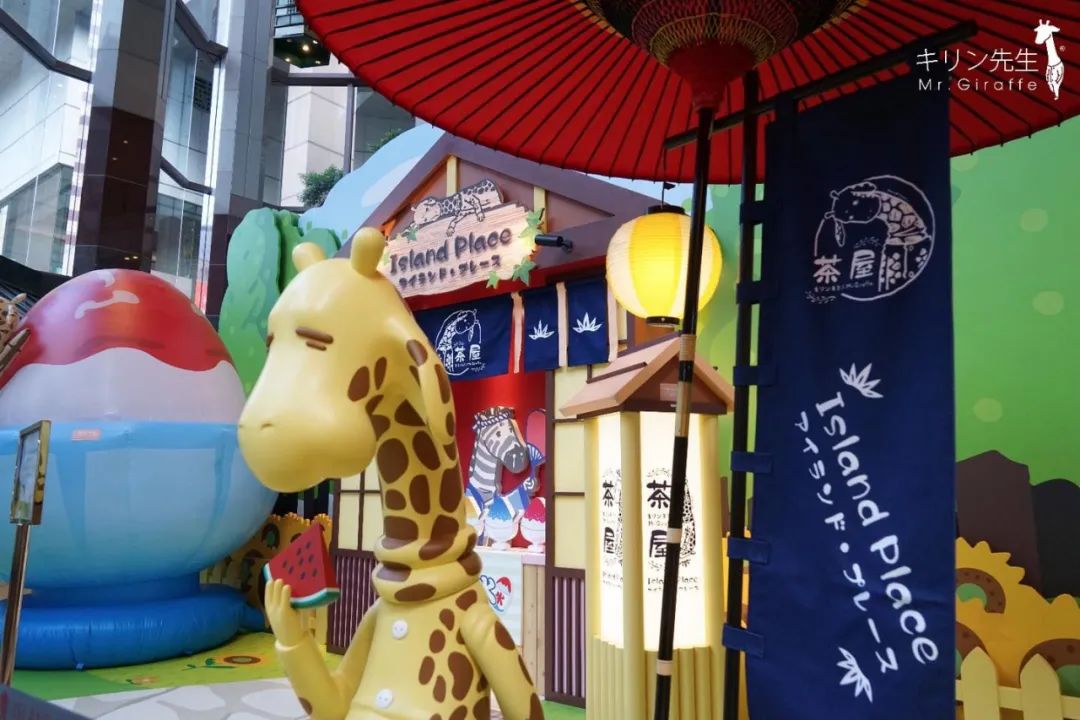 在这个炎热的夏天,island place联同Mr.Giraffe为大家打造一间日本风味的传统茶屋,希望为大家于这个热闹的商场里,能够创造出一个轻松写意的悠闲绿洲。让繁忙的都市人们,也能来到这里歇脚,消消暑及舒缓劳碌疲累的身体,放松一下心情.Mr.Giraffe生活在繁忙的都市,在动物园工作,是标准的上班族。然而每日过着上班下班的沉闷生活,容易令人迷失,遗忘生活的本质。但他却懂得享受悠闲,善于从沉闷的生活中,寻找一点儿乐趣。
