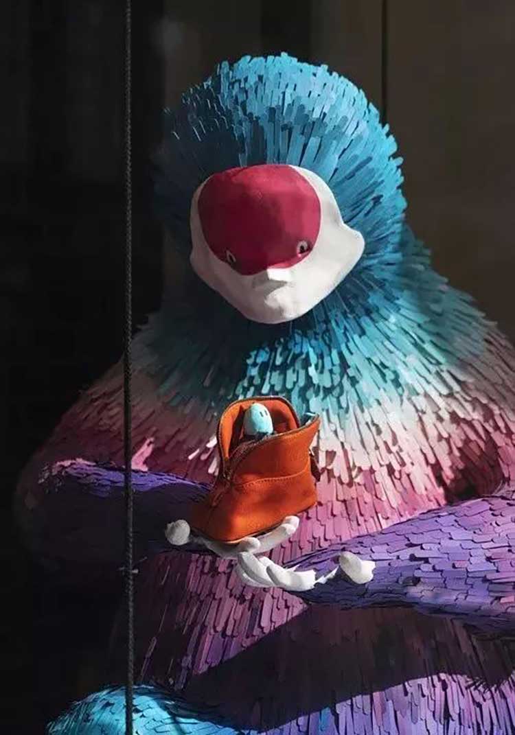 来自布鲁塞尔的创意二人组 Agnes & Anthony 专门为阿姆斯特丹的爱马仕水晶屋新店设计、采用纸和再生纸板制成了名为“梦境猎人(The Dream Hunter)”的艺术装置。