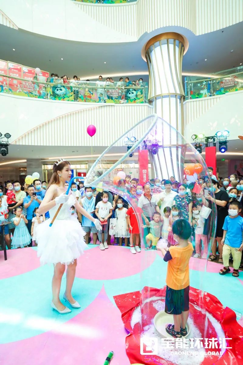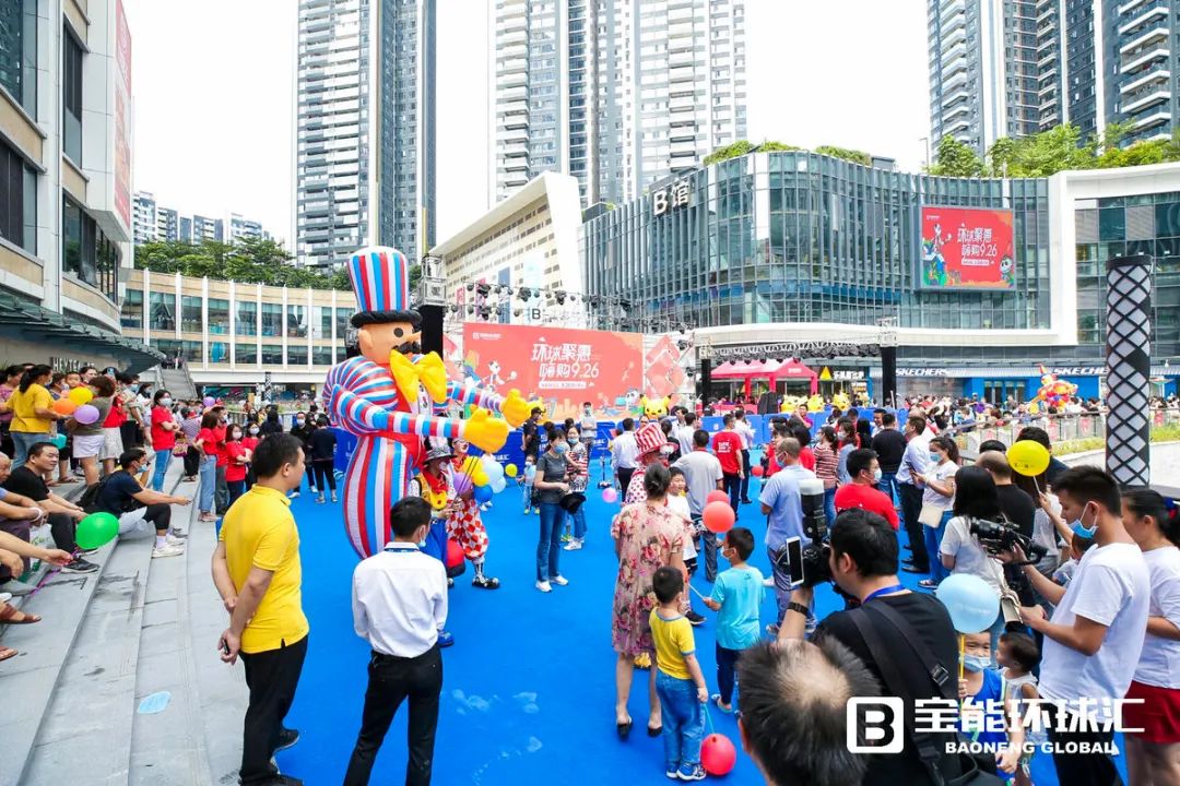 活动期间,西丽宝能环球汇以艺术、潮流、活力为主题,紧扣“艺术体验MALL”的定位,为人们带来艺术文化盛宴,如十二花神·宝能华裳文化节、“不止生活”音乐节、环球马戏节等。西丽宝能环球汇将商业项目人格化,为项目打造了原创IP形象——爱好艺术鉴赏、环球旅行和运动的熊猫人“滚滚先生”,向人们传递趣味好玩的品质生活理念。在西丽宝能环球汇L1层的环形休闲广场,上身色彩鲜艳、高达10米的IP吉祥物“滚滚先生”以兼具时尚感和街头艺术气息的形象隆重登场,成为新晋潮流标志。