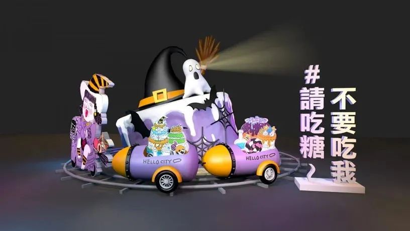 而「女巫的歪邀蛋糕列车」则是由爱吃甜食的女巫在万圣假期担任甜食特派员,骑着欧兜卖将自制的歪邀蛋糕分送给园区的妖邻居们。万圣城里的所有造景真的都具备了万圣节必备元素,连一旁也都附有搞怪Hashtag语录让大家可以拍好拍满,万圣节就决定去朝圣一波啦!