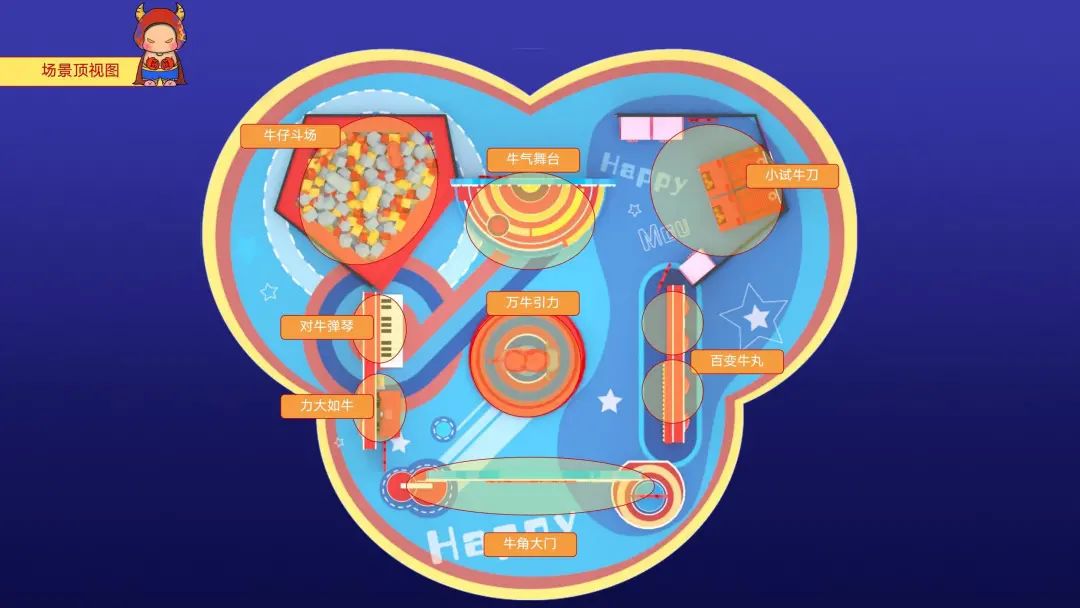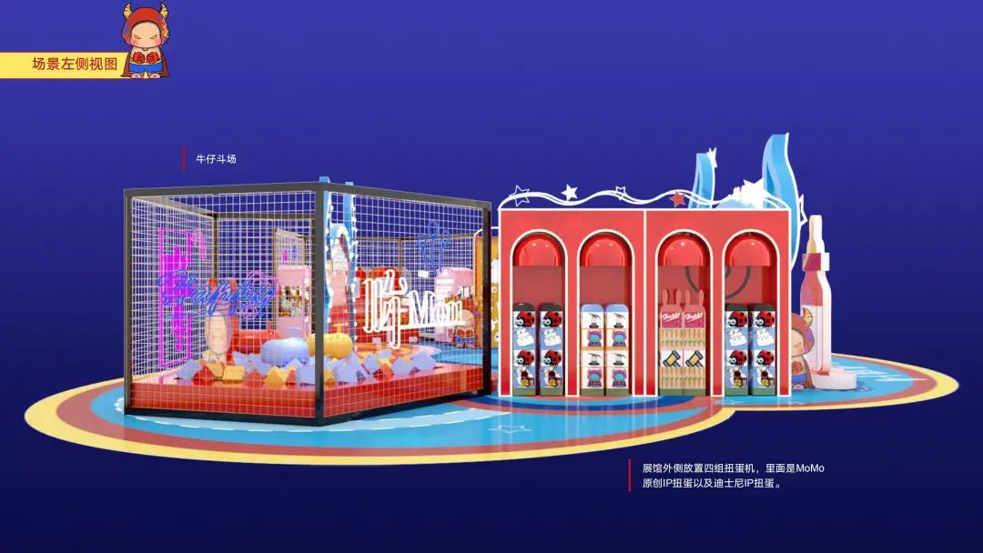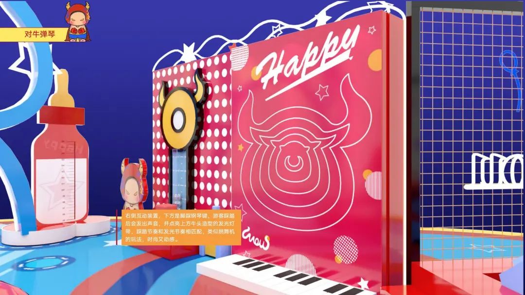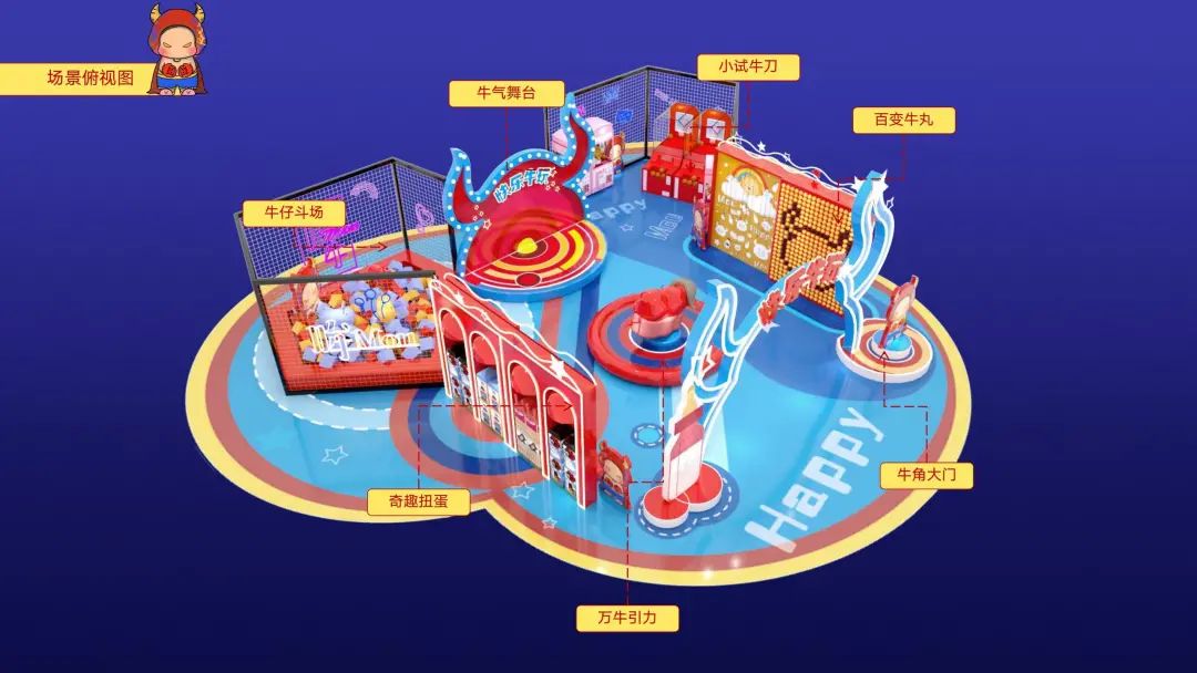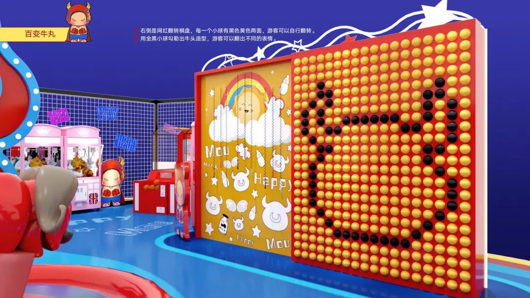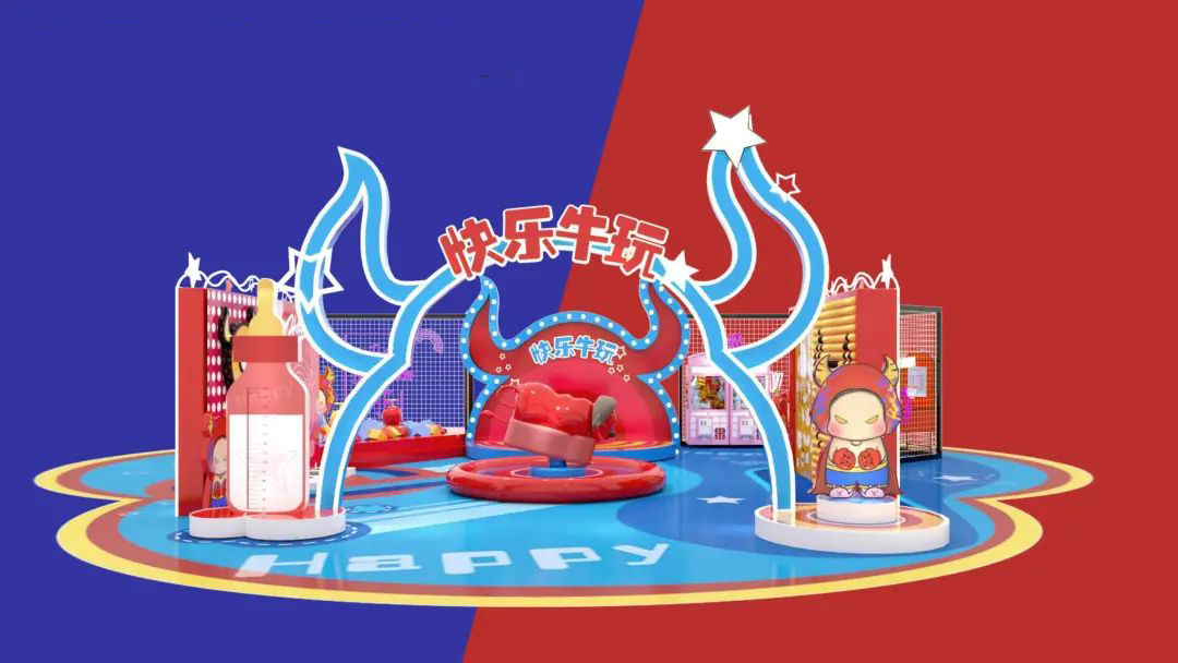 身高1米5体重150的原创牛年IP形象“MoMo”带着莫兰迪色妆容便由此诞生,其IP衍生美陈《快乐牛玩》也随之重磅登场。在“2021,我们要牛”的美好寓意下,《快乐牛玩》具备了美陈、网红、互动、零售四大功能。“牛仔斗场”、“小试牛刀”、“百变牛丸”、“力大如牛”、“对牛弹琴”、“万牛引力”,现场游戏环节丰富,光听名字就让人蠢蠢欲动。多种互动设置,点燃商业生机,等你来挑战!