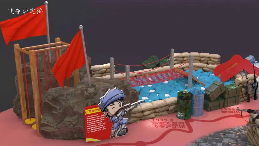 依托经典,《长征总动员》大型儿童互动游戏突出“闯关”可玩性,场景源自历史,全方位再现兴国集结、途经过娄山关、铁索桥、大渡河、泸定桥、彝族地区、遵义的真实场景,代入感满满。换上军装,背上军包,每过一关便能斩获一枚打卡印记换回自己的长征纪念章,对观众来说,玩耍同时,还能寓教于乐。