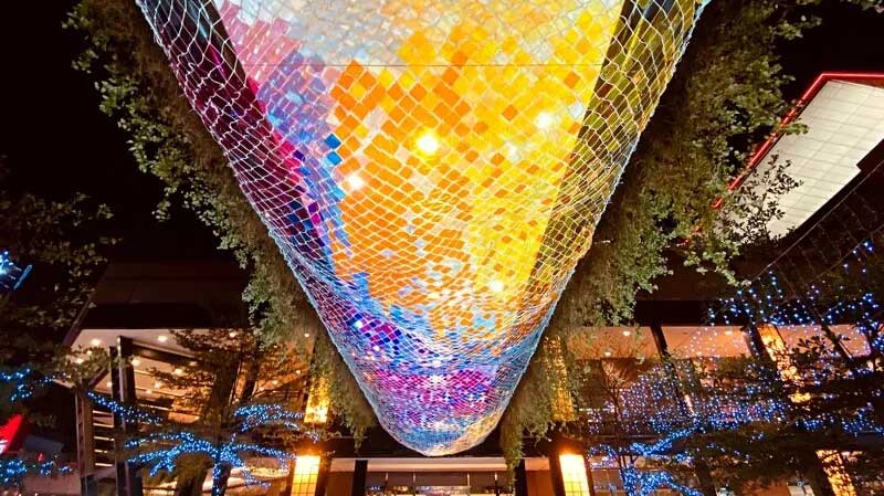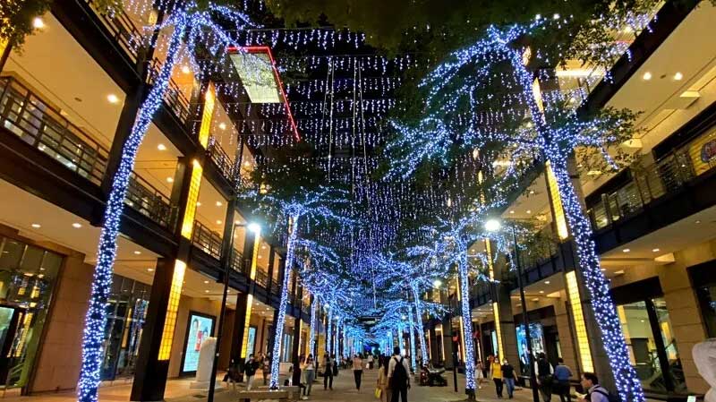 联络天桥,也有美美的圣诞灯饰,等着大家来打卡.除了主树,整个信义区香提大道也弥漫着浪漫的圣诞气氛!香提大道从1楼至3楼用30万颗灯泡打造璀璨灯海。而在A9还特别「星愿森林」场景,正中间放置一个超级吸睛的金色礼物盒,等大家用相机来开箱,欢迎旅人寻宝趣。