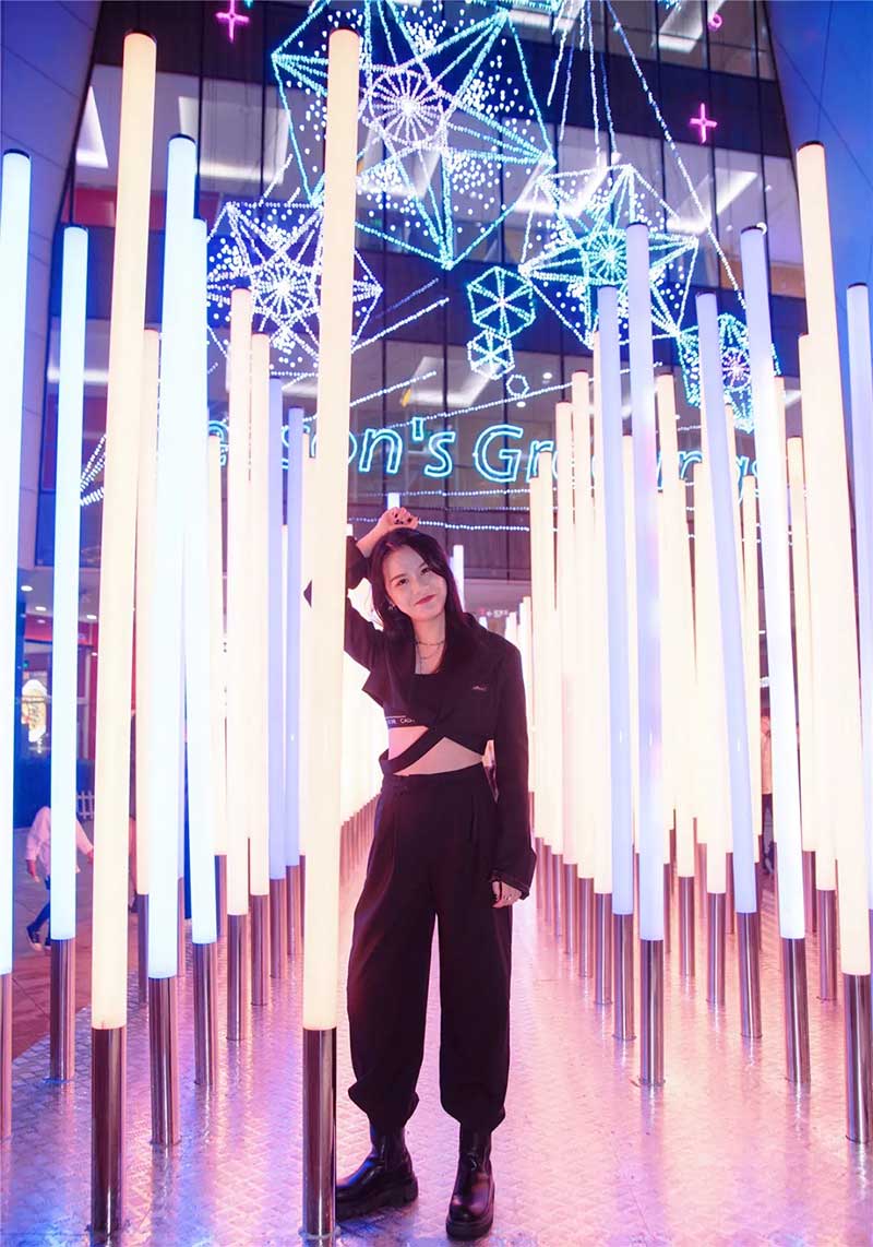 在这个圣诞树的内部,还有一个神秘瑰丽的互动空间。黑科技打造的互动屏幕,在四周镜面的反射下,整个圣诞树内部空间仿佛变身成为绚烂的光影宇宙。站在屏幕前挥动双手,或者跳一段充满活力的舞蹈,自己的身影也能成为光影宇宙中的一部分,在升腾变幻,美轮美奂的光影中,与朋友和家人一起享受一段快乐的互动时光。