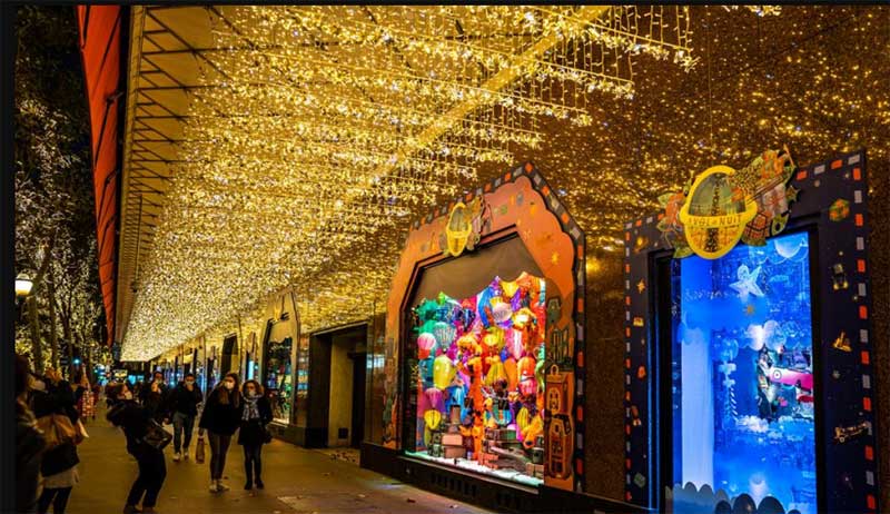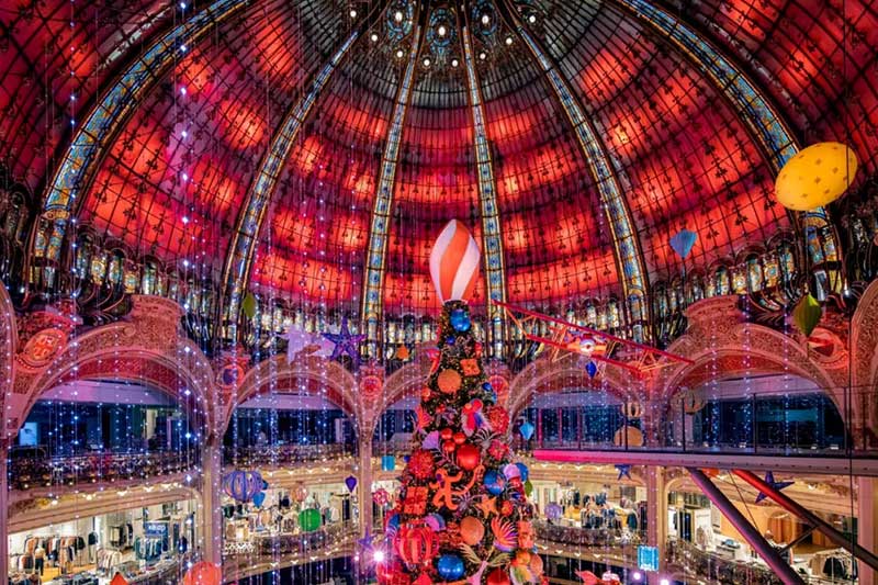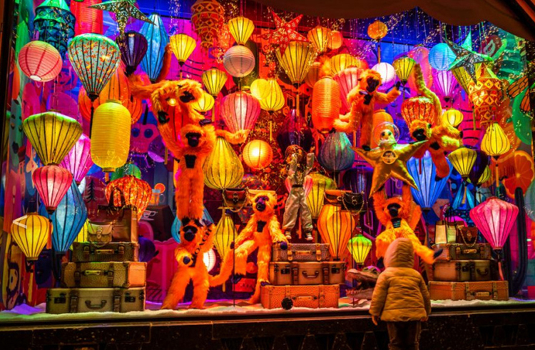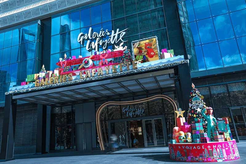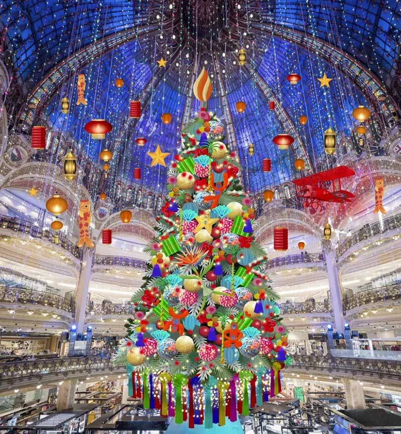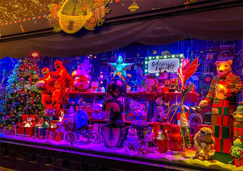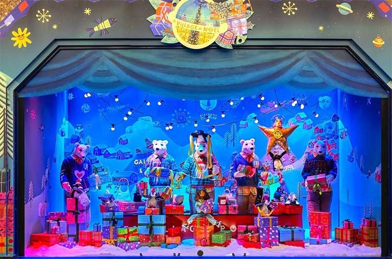 老佛爷的各大橱窗也争奇斗艳。共展示了11个童话般的场景,一个小女孩Céetront,她环游世界,遇到了许多奇妙的人物,白雪覆盖的丛林和巨大的雪豹,北极熊的村庄,沙漠和非凡的花朵,俄罗斯娃娃等;CéEast环游世界在巴黎结束了她的环游,她带回了很多礼物!