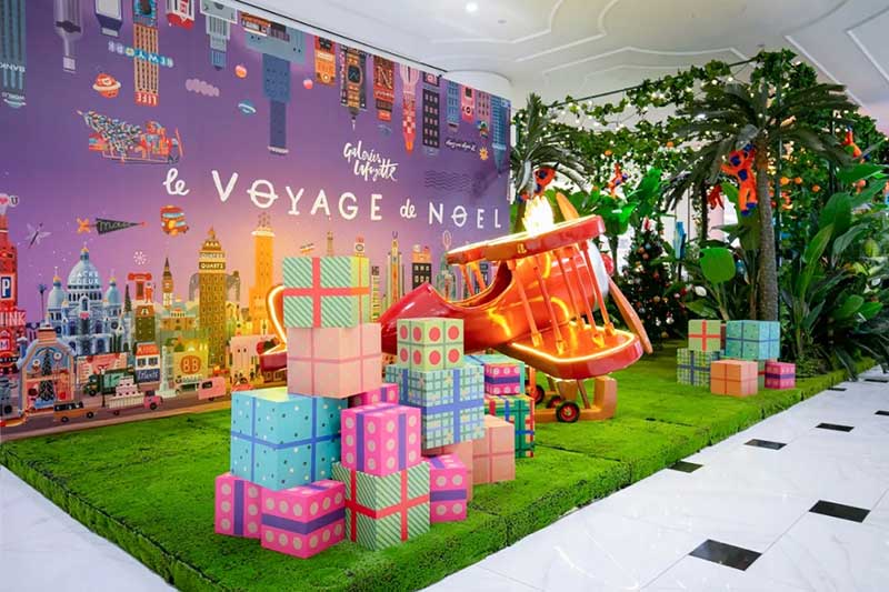今年,老佛爷的所有场景都围绕「圣诞环游记」主题展开:以一个历史性事件为出发点,一百多年前法国传奇飞行员的故事为灵感,勾勒出一段关于勇气和收获的圣诞故事。此次故事的主角是一位名叫Céleste的年轻女冒险家,为了致敬偶像,那位曾驾驶着飞机横穿巴黎并最终降落在老佛爷百货楼顶的飞行员,Céleste决定独自启航,续写这段穹顶传奇。她再次从巴黎出发,飞越过神秘的东方, 与一千零一夜中的豹女王分享自己的旅行故事,探访奇幻的北极圣诞村和魔法森林,最终带着在旅程中收获的礼物与祝福,降落在老佛爷百货的圣诞派对现场,与大家分享来自世界各地的节日礼赞。
