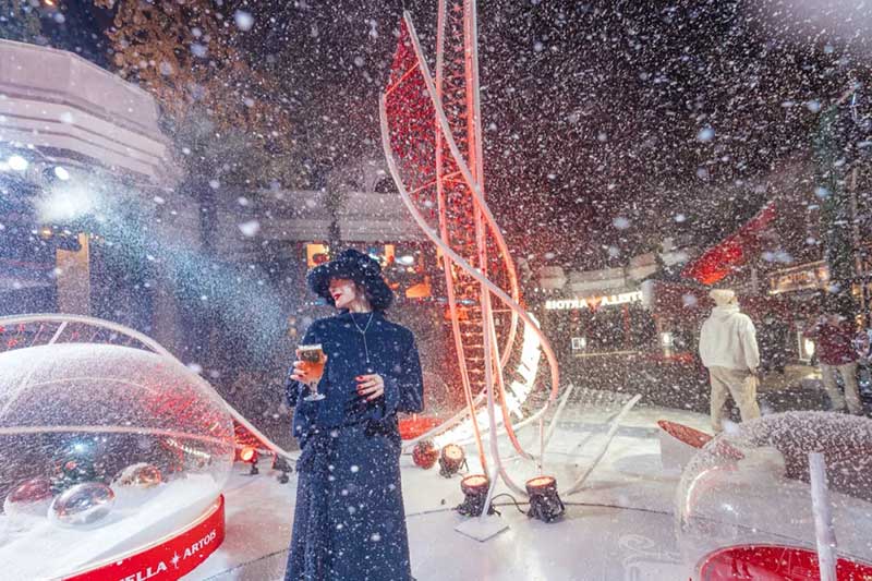 流光溢彩的圣诞季,魔都夜生活地标FOUND158,也换上华丽的节日装束。拥有600多年历史、被冠以“圣诞啤酒”之名的比利时知名窖藏啤酒Stella Artois时代啤酒,携手国内领先艺术机构UCCA尤伦斯当代艺术中心旗下的UCCA Lab,搬来一座隐秘地下圣诞小镇。简洁流畅的几何线条,勾勒出有别于传统圣诞市集的先锋时尚,迷离魅惑的红色光束,将冰雪世界染上独属于“夜”的炫目幻影。被设计师巧手揉入每一寸细节的Stella Artois品牌logo“伯利恒之星”,繁星点点,在我们的面庞上倒映下点点辉光。走近细赏,浪漫水晶球、梦幻秋千椅、艺术圣诞树三大梦幻装置,在这个12月,带给我们流淌着艺术温度的时尚圣诞。