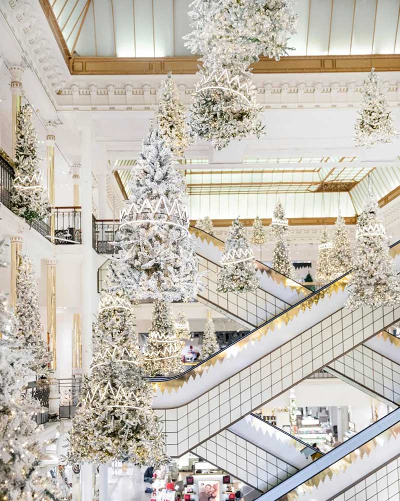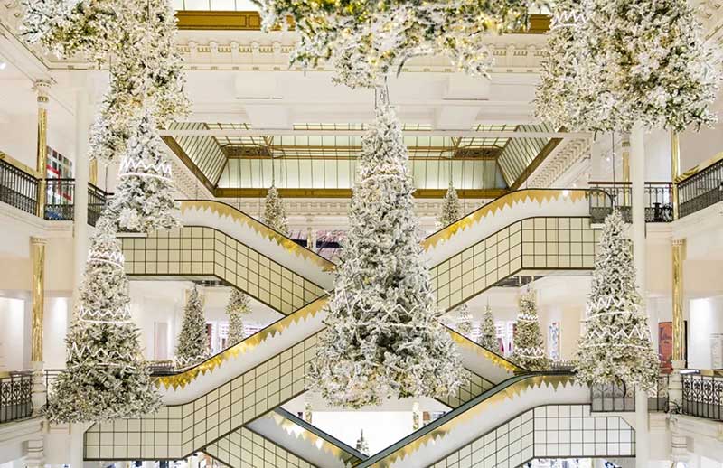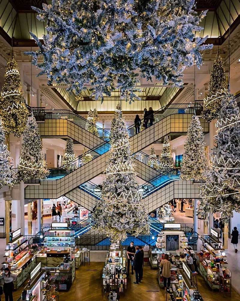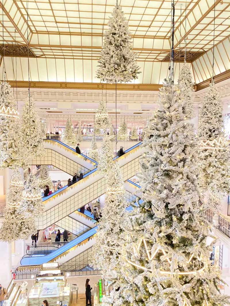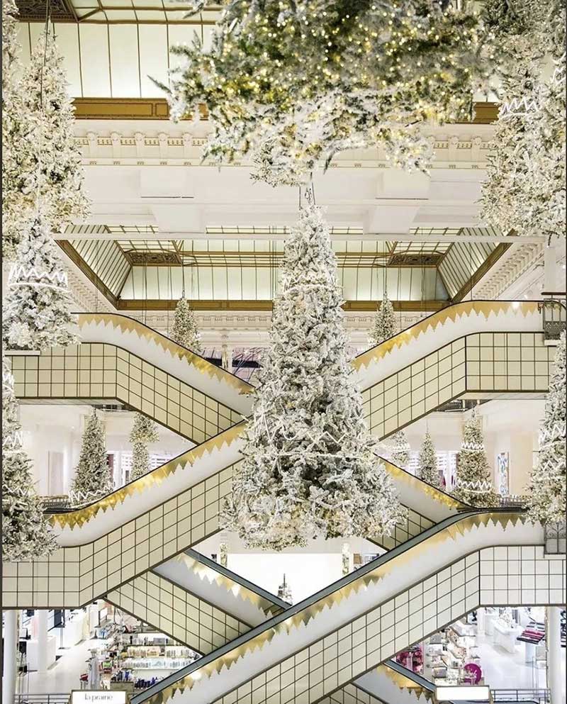 乐蓬马歇发布了最新的圣诞节的布置,以「森林之王」为主题,在中庭里种满了一棵棵的发光圣诞树,用了充满节庆感的白色调,雪白的圣诞树矗立在大厅正中央,纯白色系布置得非常梦幻!简约的设计完美地配合了自动扶梯的对称性,并散发出缤纷的圣诞节日气氛。