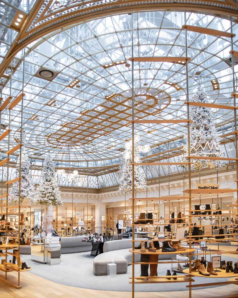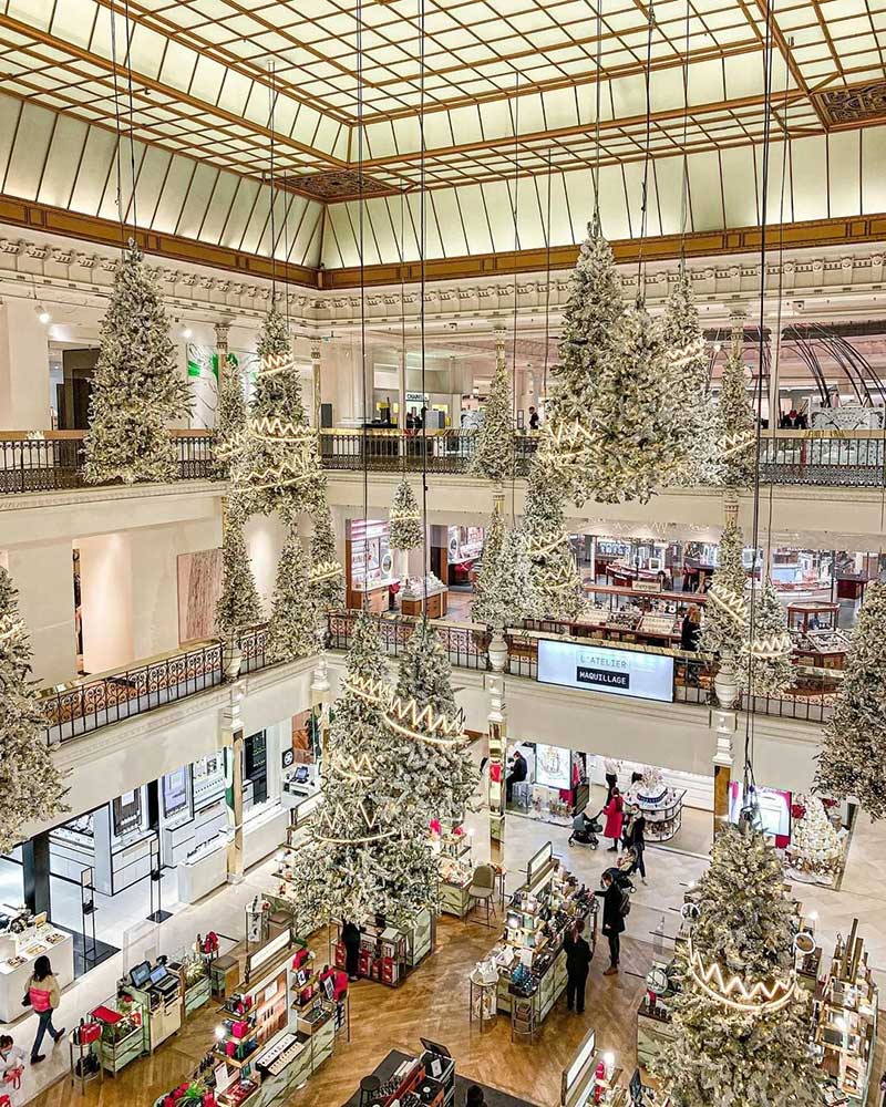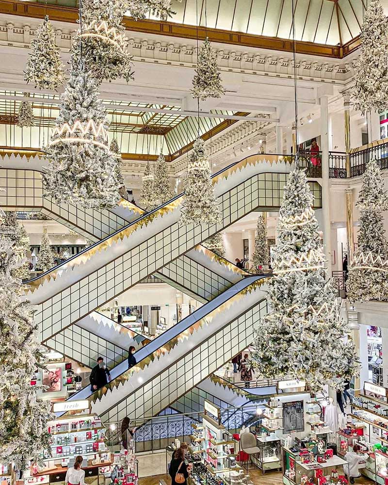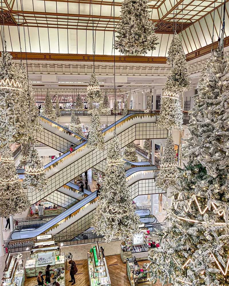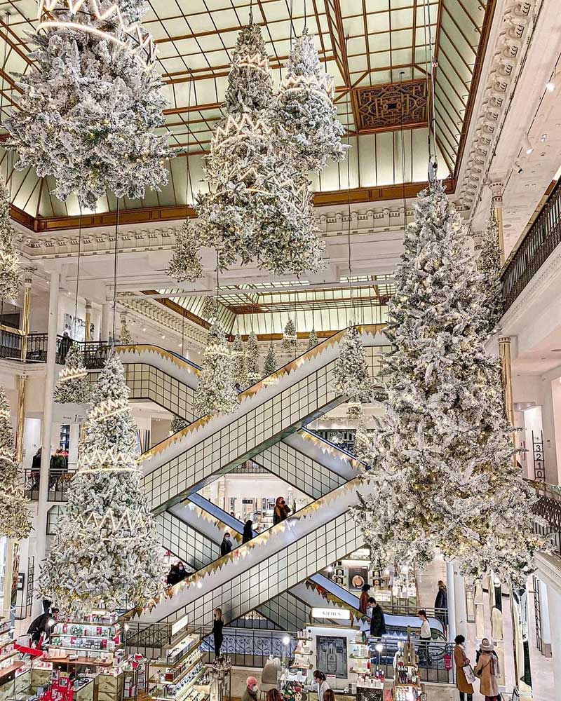 乐蓬马歇发布了最新的圣诞节的布置,以「森林之王」为主题,在中庭里种满了一棵棵的发光圣诞树,用了充满节庆感的白色调,雪白的圣诞树矗立在大厅正中央,纯白色系布置得非常梦幻!简约的设计完美地配合了自动扶梯的对称性,并散发出缤纷的圣诞节日气氛。