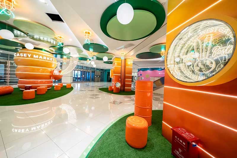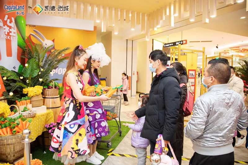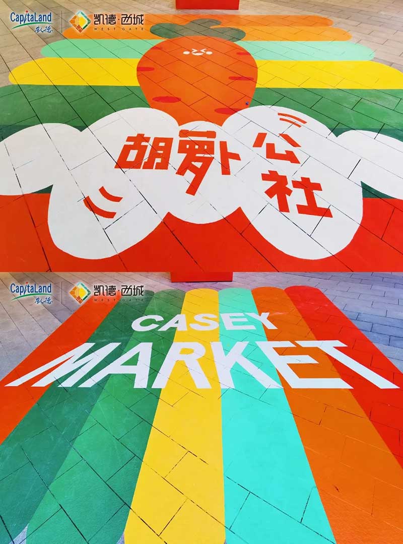 凯德·西城以原创IP凯西兔(CASEY)形象打造的主题街区——“胡萝卜公社”在商场负一层开街亮相,吸引大批市民前来打卡和消费。街区进一步丰富小食轻餐、零售体验品牌,带给区域消费者更多更丰富的消费体验,更加明亮和趣味的场景打造,不仅让小朋友们沉浸在凯西兔的萌趣中,更让大朋友们感受到凯德·西城的“变”与“潮”。
