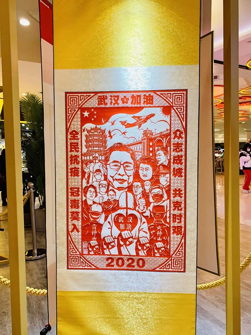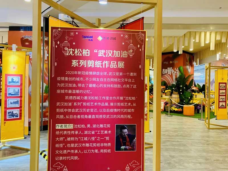 2020年初,一场突如其来的疫情改变了所有人的生活。为致敬这场抗击疫情的战役,抗疫一周年“武汉加油”剪纸公益展在凯德·西城的“胡萝卜公社”主题街区举办,本次展出的剪纸作品来自联合国科教文组织授予的“工艺美术家”沈松柏老师,生动展现了武汉人民在抗击疫情期间的无畏精神,为这座英雄的城市加油致敬。