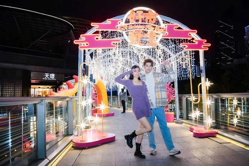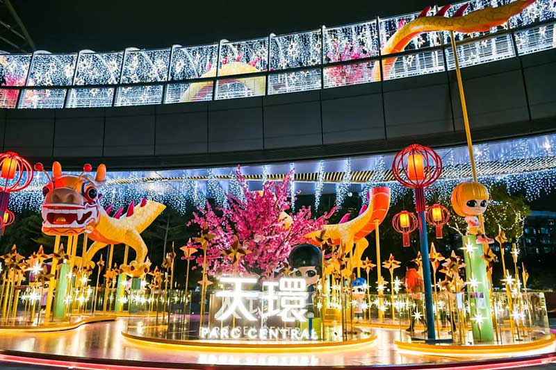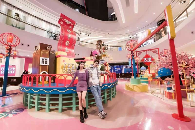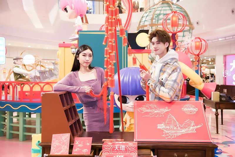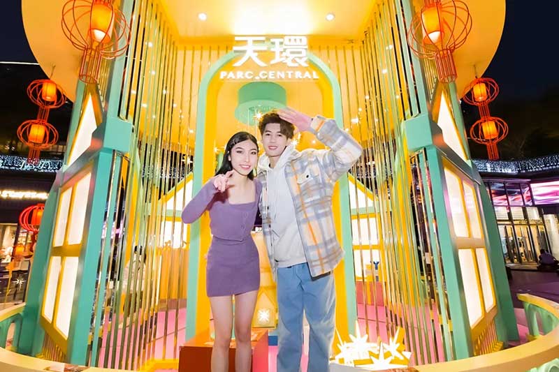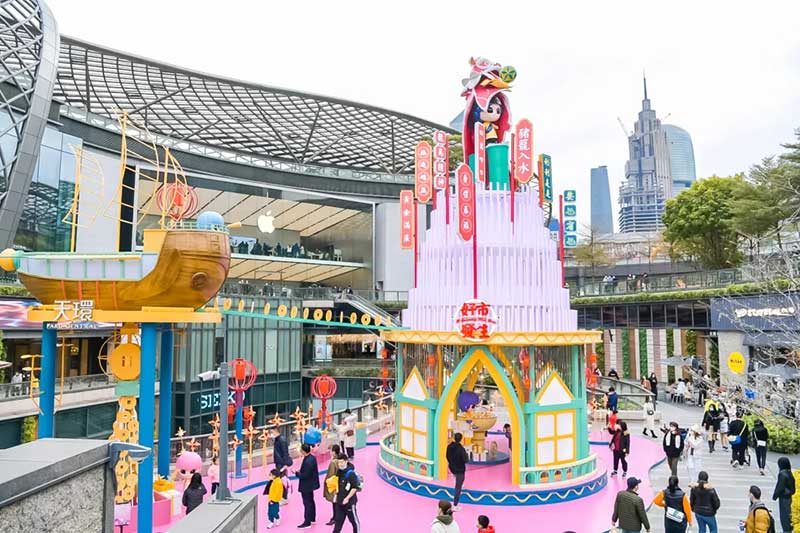 天环“好市發生”国潮新春主题展粤式新年欢乐开启,带给你风生水起的好运气,2021必定好事连连发生!13米高的新春幸运塔楼,塔尖的岭南特色喜萌醒狮和一身潮服的萌娃抢眼又吸睛,粤式新春热闹气氛瞬间点燃,与你一起贺岁。