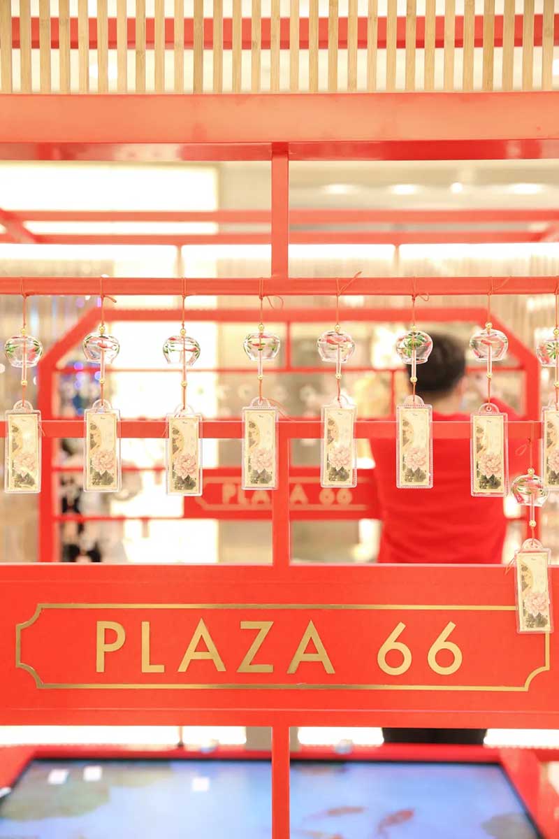 步入上海恒隆广场,一眼就被这座典雅的绛色祈福寺所吸引,路过其间,引来微风拂动,坠着祈福牌的风铃随风摇曳,叮当作响,清脆悦耳的铃声仿佛正在演奏一出欢庆新春的乐曲。中间的牡丹园许愿池更是大有乾坤,象征着好运的锦鲤正在自由游动。用手机扫描装置内的二维码进入小程序,在“健康、事业、爱情”三个愿望关键词中选择一个,然后滑动屏幕上的金币落入许愿池,就能收获专属于你的新年好运签,还有超多品牌礼品和新春红包随机派送,说不定现实中的锦鲤就是你哦。