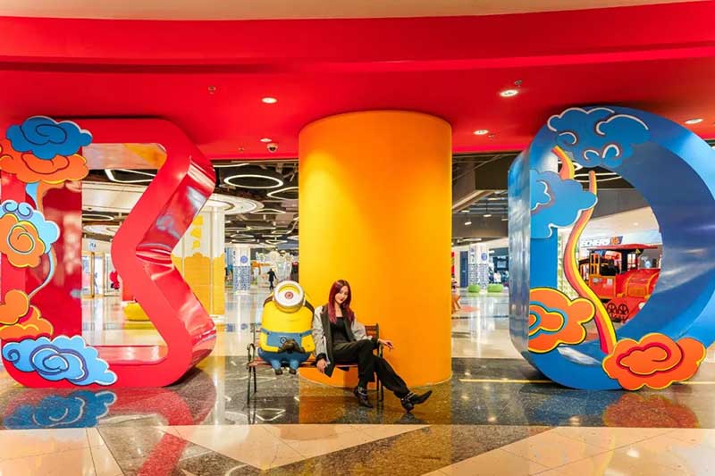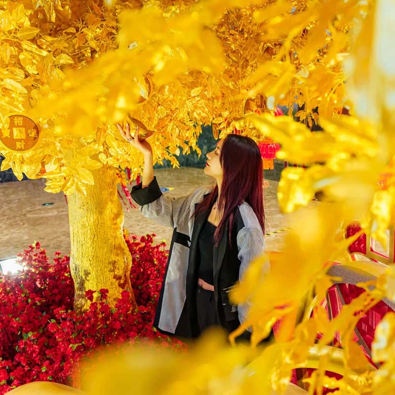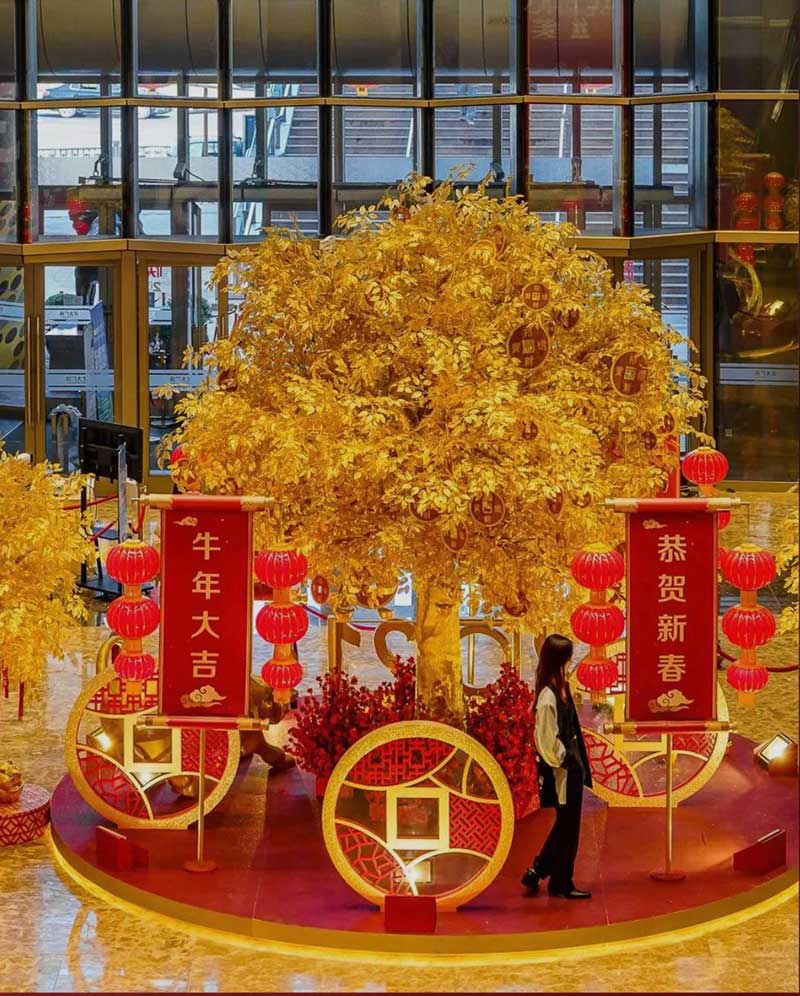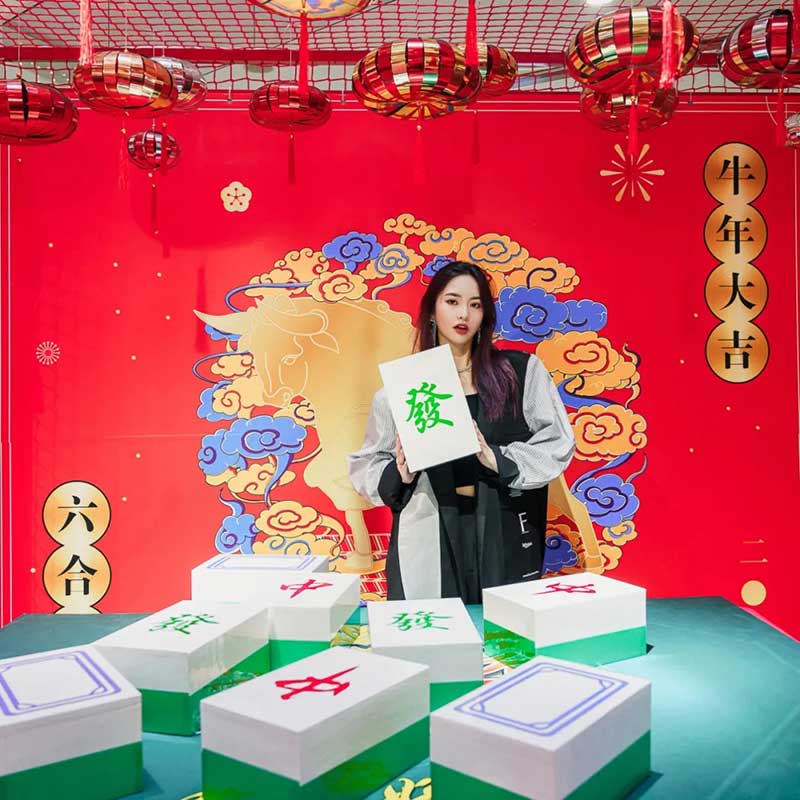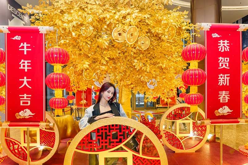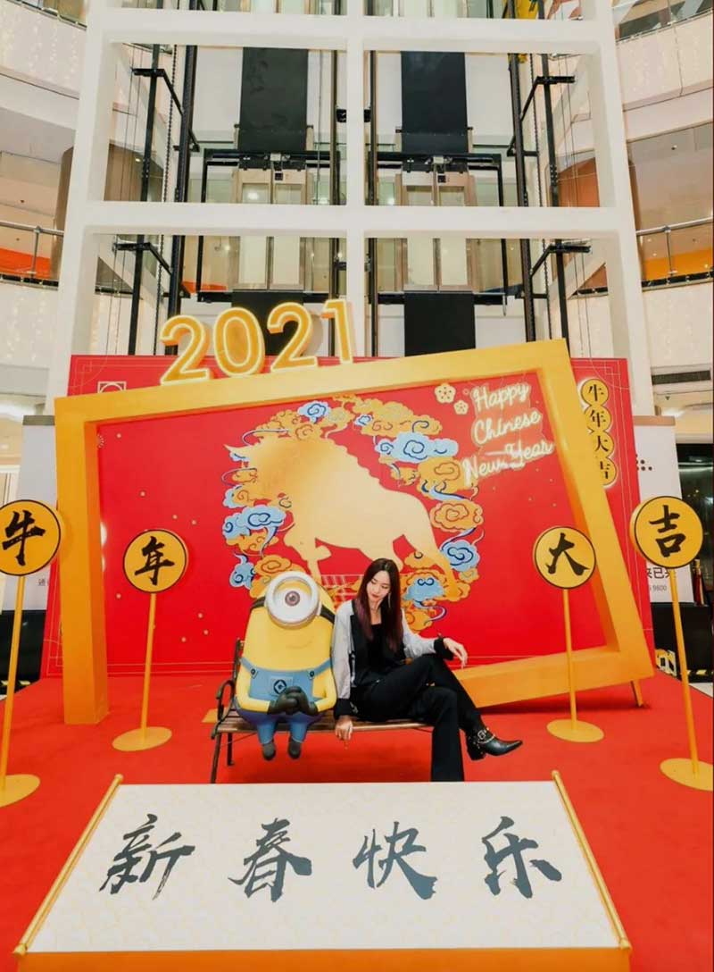 进入商场一楼东区,迎面便能看见一座金光灿灿的大型装置,布满金色树叶和钱币的招财树,将为你带来牛年的滚滚财运。在一楼的另一侧,还有“萌”春游园会,四大摊位空间,集齐互动游戏和抽奖好礼,让你边逛边买玩够瘾。游园会中心则专门设置了一个拍照打卡区,让你能和可爱的小黄人一起共贺新年,还有特别的“万福临门”全家合影区,参与互动就能免费将打卡照打印出来哦。拍完照再去旁边碰碰好运~在“花牌连连看”区域,每张牌都暗藏着神秘惊喜,等你来揭晓!
