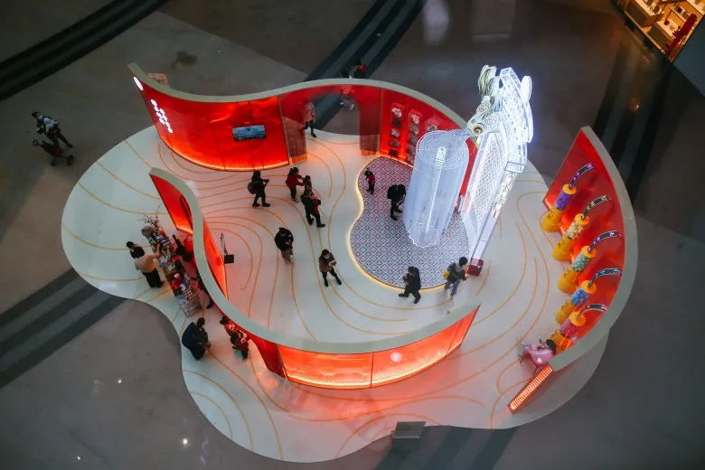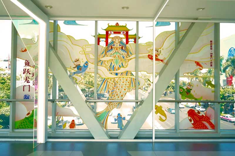 在化身成为滴水兽“”迷你博物馆“”的SM,你不仅能看到征集于闽南的滴水兽旧物,也能看到传统滴水兽的玩新重生:精心设计的中庭主景,高高挂起的滴水兽春联、盘踞在门上、天桥的滴水兽…真是年味十足。SM携手府里一起展现的这一闽南传统建筑构件的“返本开新“, 让逐渐消失的滴水兽以另一种全新的形式守护在我们身边。