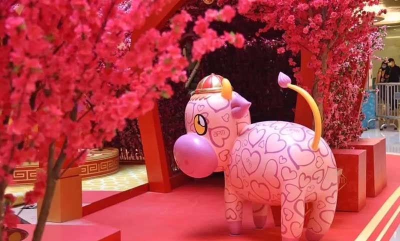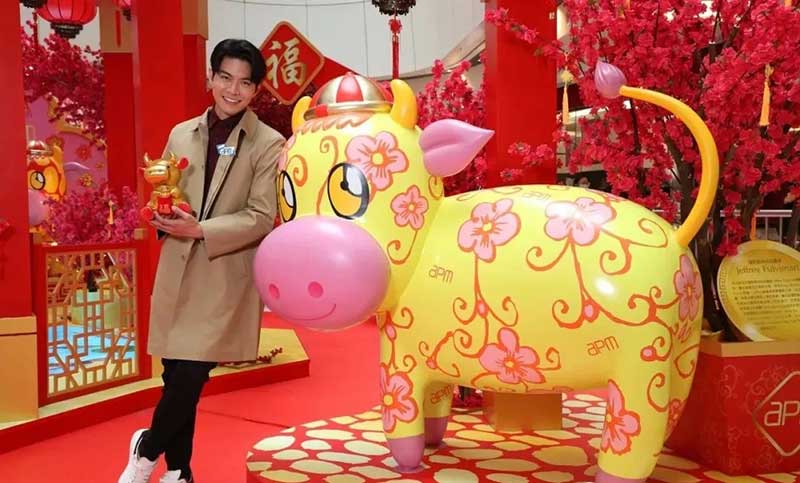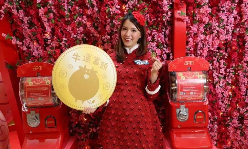 金牛迎春,新鸿基地产(简称新地)旗舰商场apm将以「金牛祈福游乐园」为主题,特别与国际级时尚插画家Jeffrey Fulvimari合作,为apm设计充满时潮流时尚元素的贺年装饰,占地3000呎的「金牛祈福游乐园」让顾客畅游六大福气景点,艺术与互动科技元素兼备,顾客不但可观赏时尚艺术,又可用智能手机大玩捞金鱼游戏,幸运扭金蛋获取鸿运牛金币。同时,apm推出别注版萌爆潮牛利是封,顾客有机会订制独一无二的专属利是封,随自己喜好印上专属名字或自选搅笑祝福潮语,开心过新年。