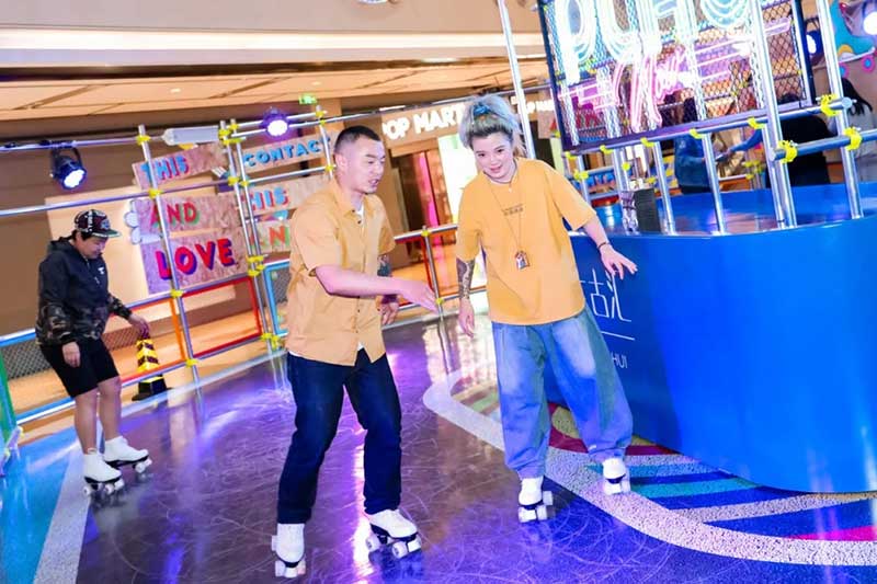 今年的兴业太古汇整个变身80S复古轮滑场,主题新增了复古轮滑和80年代复古街头元素等。从轮滑场、商场bgm到各种陈列装置……一场融合了轮滑、钢琴、音乐等的80年代复古派对华丽开启!离开地面的速度感伴随着复古音乐,整个人的心情up up!轮滑现场,竟然还有酷炫动感DJ,在音乐变换中大家穿越到80S,“尽琴”摇滚!迪斯科球,老式舞厅霓虹灯,不间断的复古音乐,带你一秒回到80年代的夜生活。
