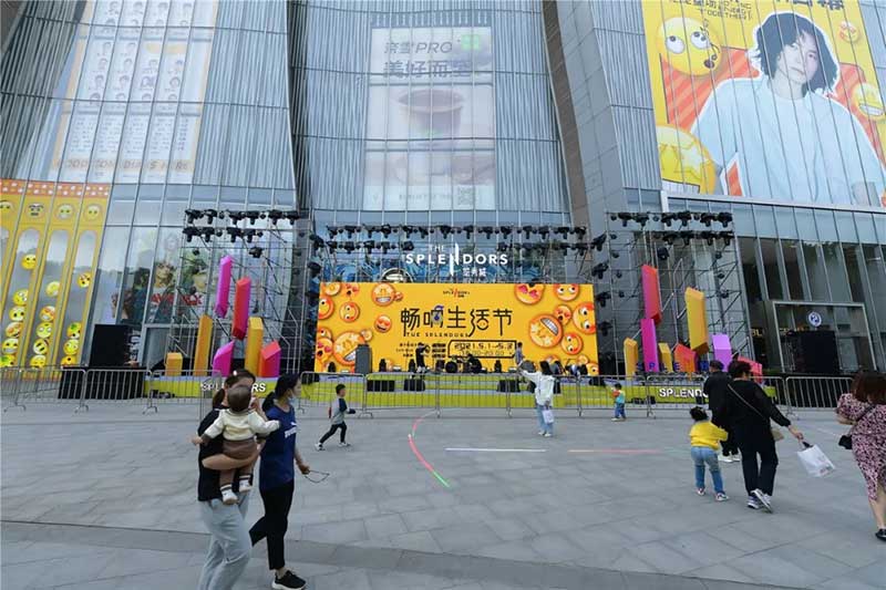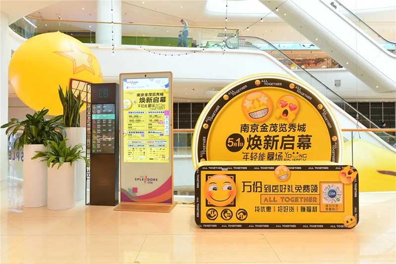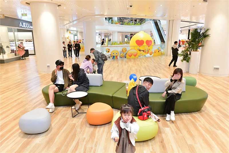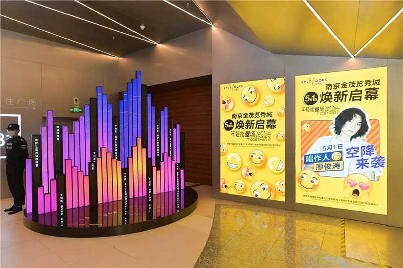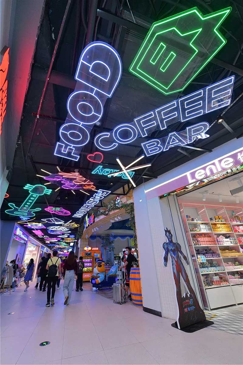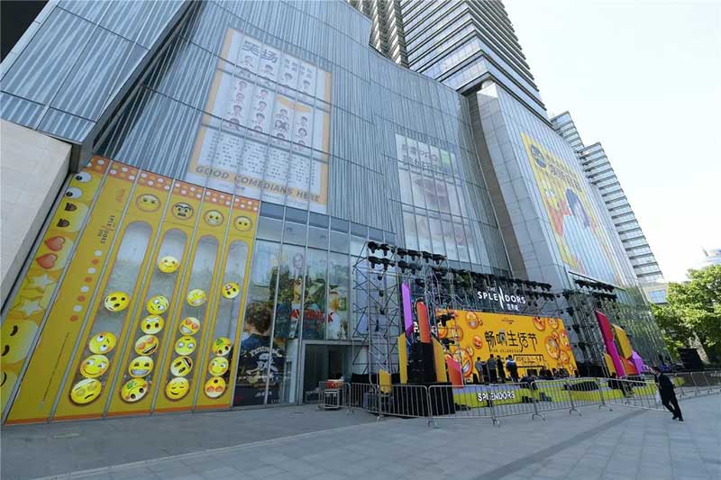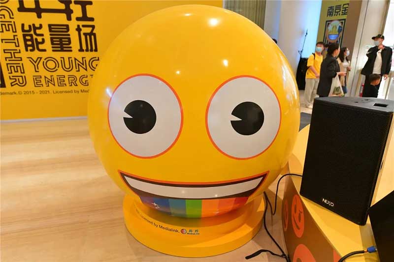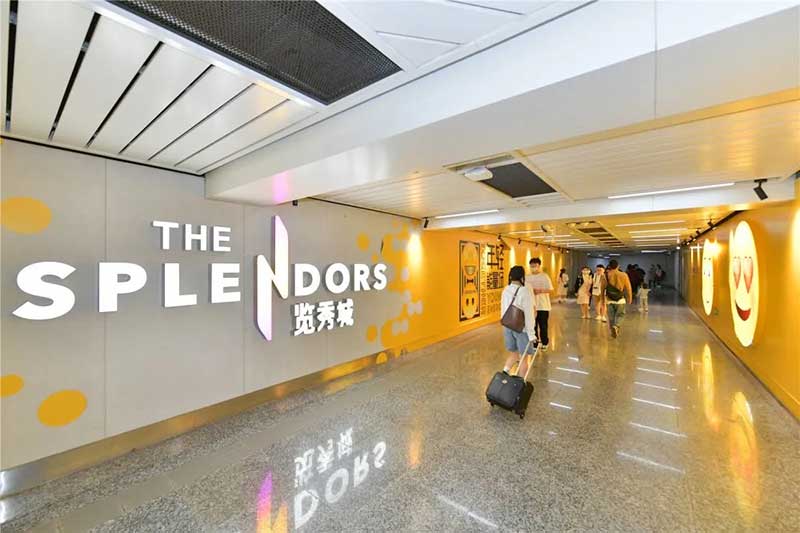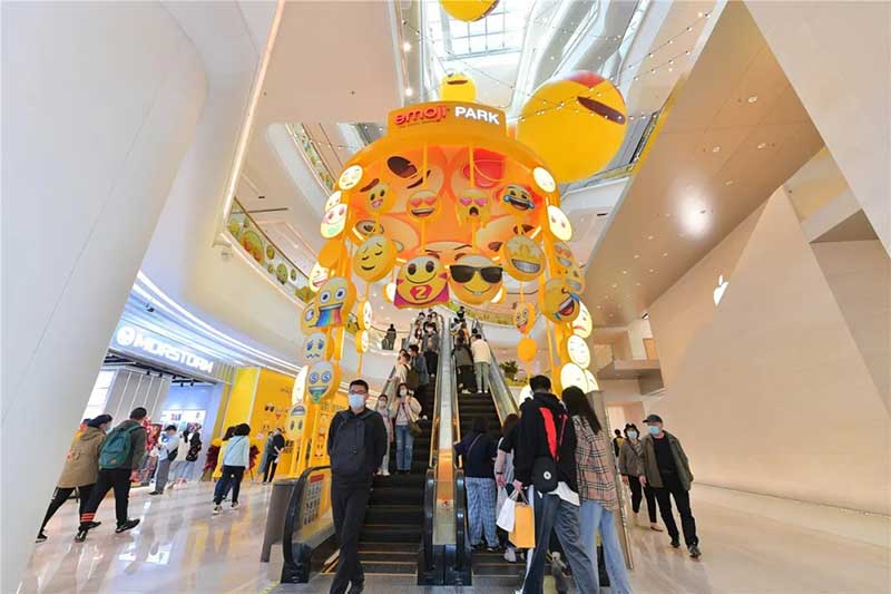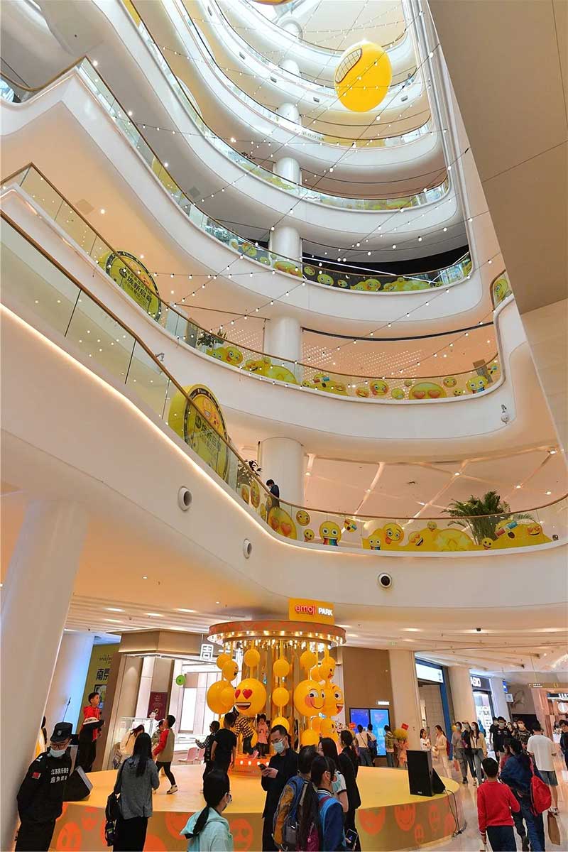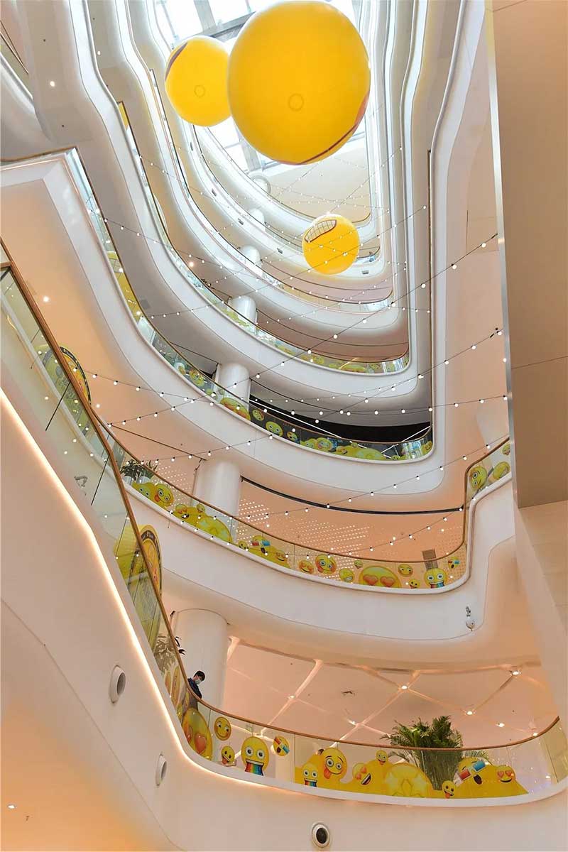 全球潮流IP emoji重磅打造emoji park 带来一场欢乐盛宴,本次设计有四大亮点,在构思的初期考虑利用感受来构想,主题设计上考虑大家越来越离不开手机作为多媒体阅读,所以大玩emoji表情包设计就横空出世了。如今购物已经离不开虚拟加实体,在设计意念上当然非开心主题莫属啦,把全新的览秀城带出更年青,时尚,活力来。活力也分内外,所以意念上是把年青人的心声用emoji表达!贯通地铁及商业空间,设计了多个大型emoji公仔区域、这个是必经通道,而为了配合购物中心加大吸引力和加强玩味的要求,一些趣味性的游戏装置和大型墙画将连接连廊的前端和转接位!