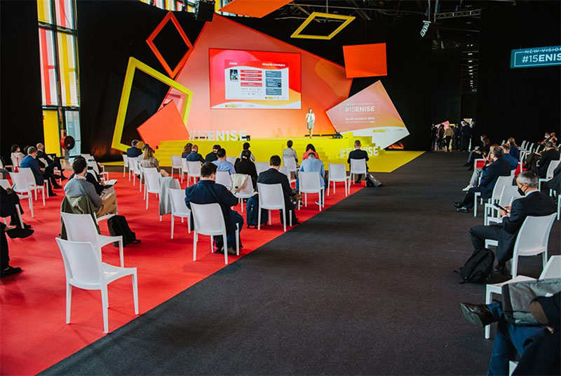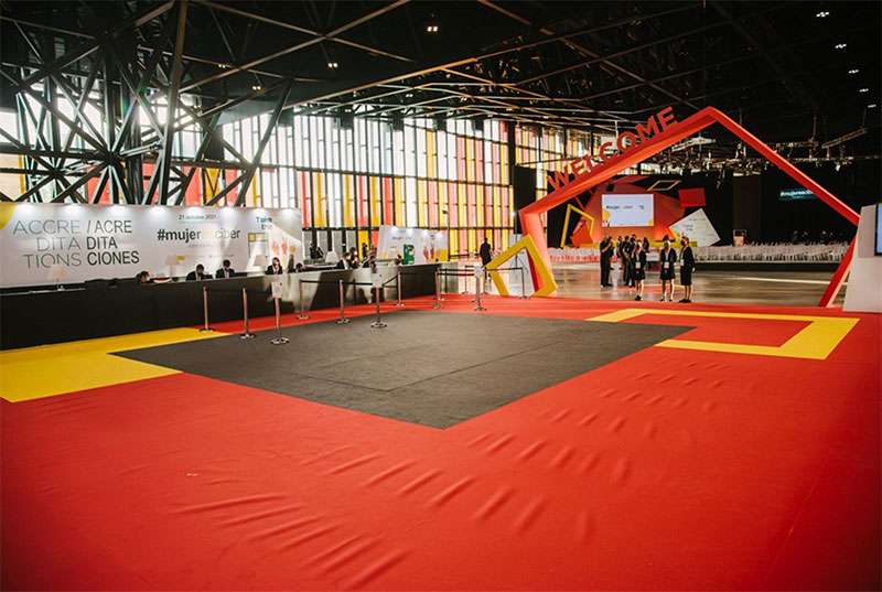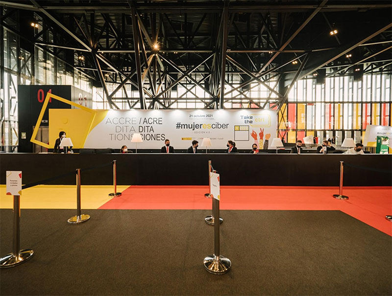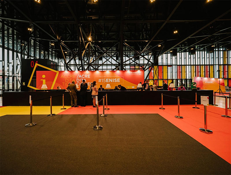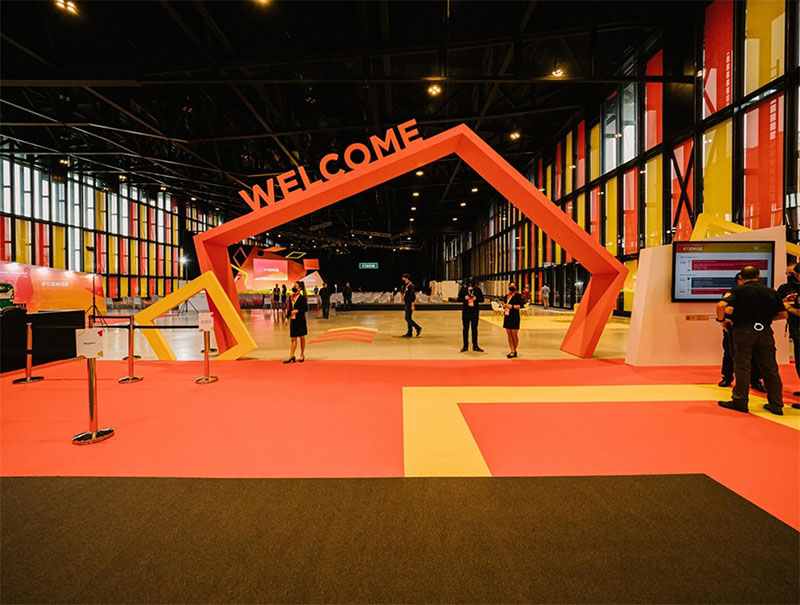 第十五届信息安全国际会议(Enise)希望活动中的图像更人性化、更有机和更通用,使其更加平易近人。因此,活动设计了新的图形和纹理,将企业颜色(红白黄)融合在一起,产生新的色调、新的细微差别,这代表了变化和新的机会。指纹图案代表了人类和数字的共存,以及两个世界的联盟,突出企业红色作为图形线条的基础背景,以赋予Enise应有的存在感。从整体方法出发,将图形线条在视觉上整合到空间设计中,并根据每个区域的尺寸及其建筑结构进行应用。