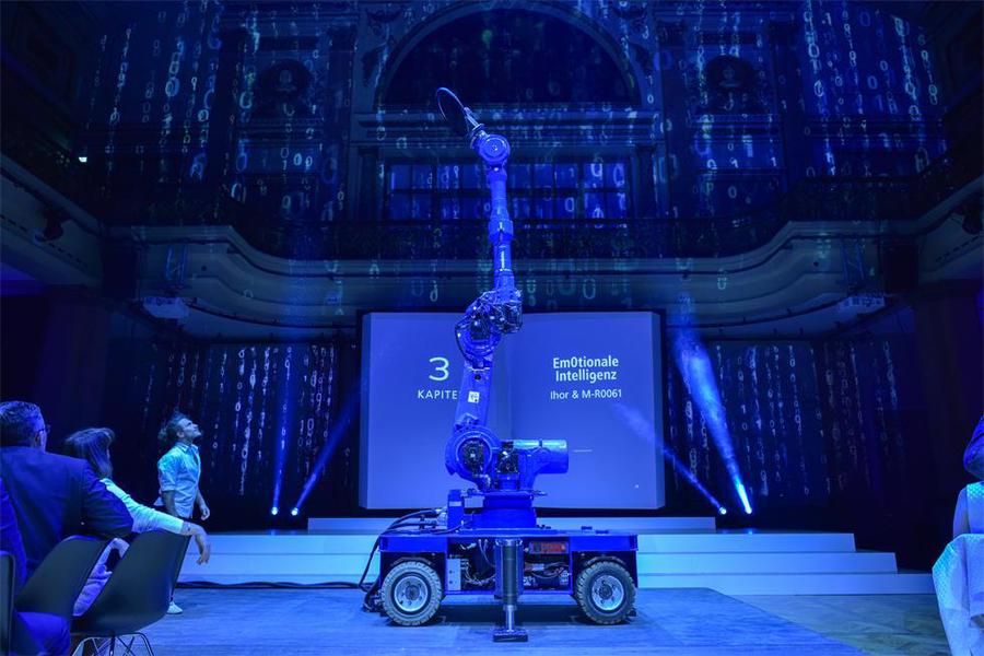 第三段:伊霍尔和机器人M-R0061将高科技和杂技结合在一起,令人印象深刻地展示了数字与人类的共鸣,开启了数字与人类友谊的新篇章。