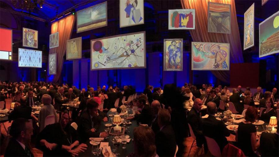 “艺术不只是再现可见的东西,而是把通常看不见的东西变得可见。”保罗·克利(视觉艺术家)的这句话代表了一个视觉上令人震惊的场景的气质。整个活动在同一个场地上进行,白天活动到晚会现场的切换并没有改变活动现场的基本配置,只是通过现场的各种投影幕布框架,将活动大厅变成了一个充满活力的舞台。在整个晚上,伴随着音乐和表演不同时期的艺术在投影框架内被呈现,一个非常奇特的心理魔术表演组合令客人们惊讶不已,舞台的表演展示了理性分析和感性艺术之间的异同之处,透过艺术的视觉力量,拓展了观众的知识,开启了探索人类直觉的过程。