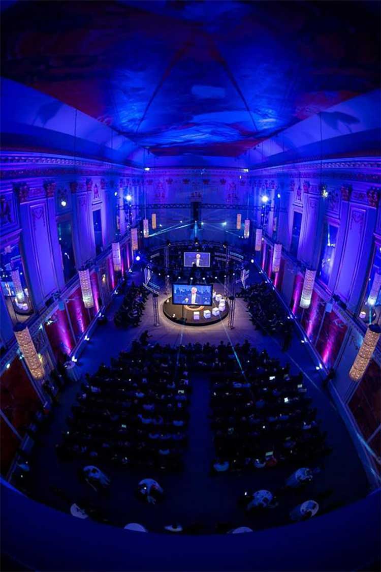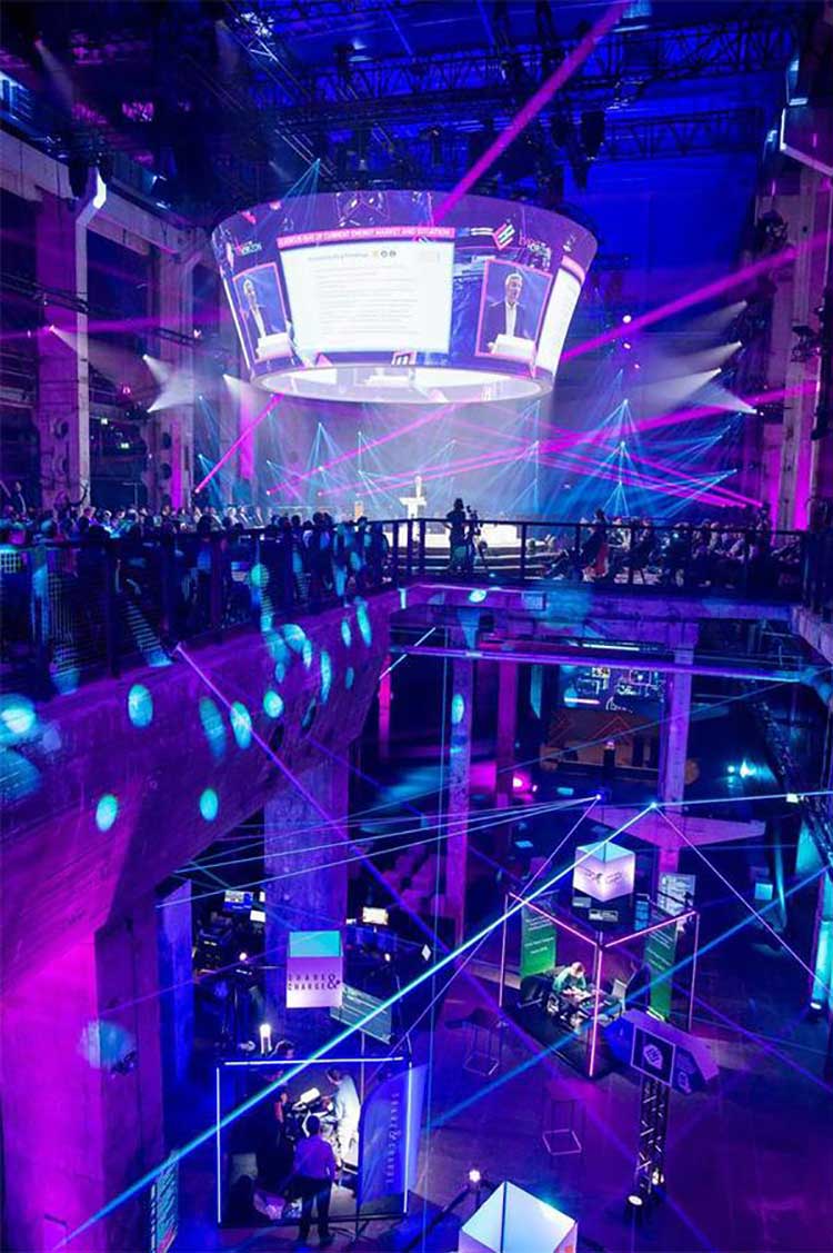 此次峰会还设计了独特的360度活动体验,不仅让众多客人兴奋不已,还获得了各种奖项。整个活动现场是一个有趣的交互式“数据主题公园”与一个包含数百万数据位数据库相互连接,创造出独特的体验和故事。一个由550多个可移动的灯光和激光设备构成的空间代表了数字的网络。来自全球的客人可以通过app和耳机分别体验了“安静会议”。通过生动的可视化的交互式数据,所有的舞台和展览区域都变成了一个数据主题公园。