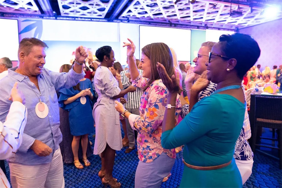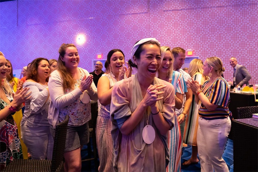 “订婚!”峰会是为致力于婚庆行业的专业人士设计的,他们正在为业务增长寻找创新的想法和实际的解决方案。“订婚!”致力于汇聚精英中的精英,并将参与者限制在350人,在非客户、非竞争的环境中,营造一种融合的亲密氛围,从而实现坦诚交流。此次“订婚!”峰会第二天的全体大会依旧亮点爆棚,其峰会活动现场明亮的颜色和花朵的装饰,与本次大会的热带主题相当匹配,现场也显得更明亮更活跃,嘉宾们看了也心情大好。