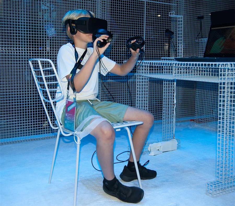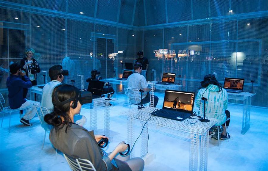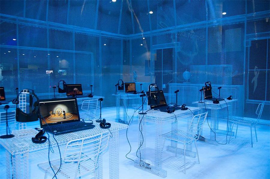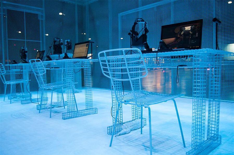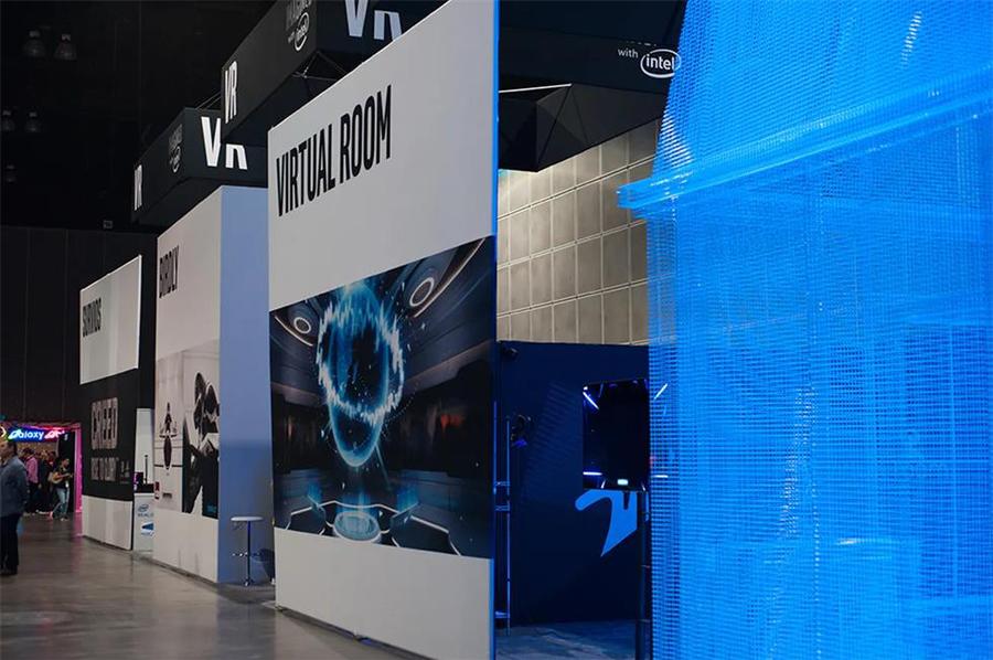 洛杉矶虚拟现实(VRLA)大会已经举办了第五年,被誉为全球最大的VR会议之一。此次大会设置了英特尔(Intel)“虚拟教室”现场,整个展区是用铁丝网格搭建,并使用了英特尔的品牌色蓝色,使用网格材料,是为了体现VR的虚拟与现实。