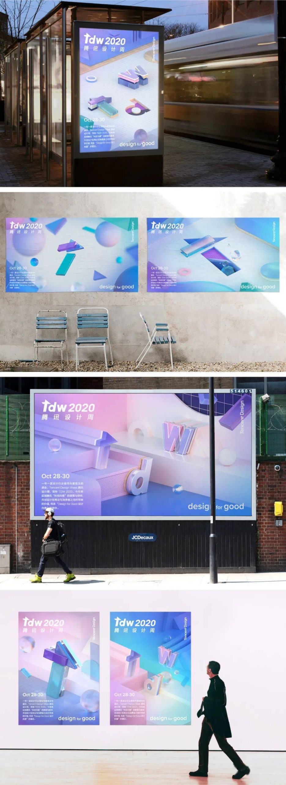TDW(腾讯设计周)是由腾讯举办的年度设计盛会,不仅汇聚腾讯设计师,也有来自其他地方和其他行业的设计师分享不同的观点。在“设计向善”的口号之下,TDW每年都可以讨论各种设计主题。我们考虑了多种呈现口号的视觉方式,并决定使用关键词“有力”、“强调”和“动感”。通过这些关键词,得出了以动态描绘形态的设计概念。