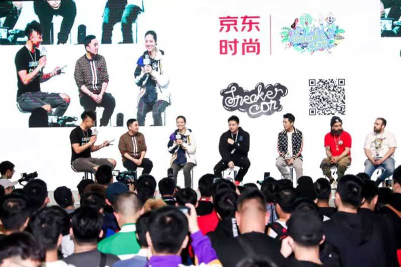 而在 Sneaker Con 广州站,京东时尚联合 Sneaker Con 推出了 100 双黑红 Air Jordan 11 的抽奖,由国际网球名人堂成员、Sneaker Con中国创始合伙人李娜,京东时尚居家平台事业群国际业务部总裁蒋科与京东时尚居家平台事业群全球购业务部总监徐伟龙,球鞋潮流博主以及抖音潮流博主一同在舞台上开启抽奖环节。